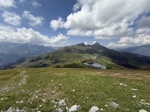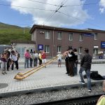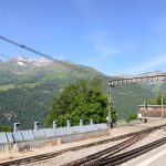 昨天坐火車來到小夏戴克,下車時把兩支登山杖遺落在車上。今天又來到這裡,第一件事是找穿黃背心的車站工作人員,問問看是否有留在車站,很幸運的拿回來了登山杖。在遊客中心內休息等火車時,外面傳來了悠揚的音樂聲。到外面看,發現是兩位樂手,在月台上以阿爾卑斯長號吹奏樂曲。這是第一次在瑞士高山上,現場觀賞表演當地特色樂器,十分難得。