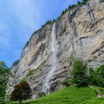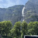 Murren 的纜車站有三處,都不在一起,不過相距都不遠。想去看看往 Stechelberg 的纜車票會不會很貴,價錢可以接受就搭纜車下山。這條纜車線的坡度非常陡,下降時看來近乎是垂直的角度(當然是不可能),是一次全新體驗。纜車站旁有公車站,等公車時看到對面山壁有一瀑布,是 Murrenbachfall 水量比之前近市區的大許多。按我最原始的行程是希望從市區健行到這裡,再從這裡搭纜車上 Murren ,和今天行程反向而行。搭上公車仔細觀察兩側山壁,看看能不能找到其他的瀑布。直到下車時只看到另外一個瀑布,加總今天只看到四個瀑布,離72也未免太多了。