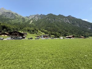 火車沿著山谷前行,進入格林德瓦地區,山坡的草地上,散落著許多小木屋,典型的瑞士小鎮風光,呈現眼前。今天就要開始探索如夢境般的小鎮。