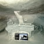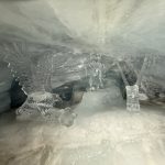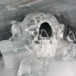 冰宮是在冰河下方挖的小隧道,走道邊有幾個冰雕作品。冰雕作品有北極熊、朗朗的演奏鋼琴曲的神情、老鷹等。走馬看花很快就走完了。