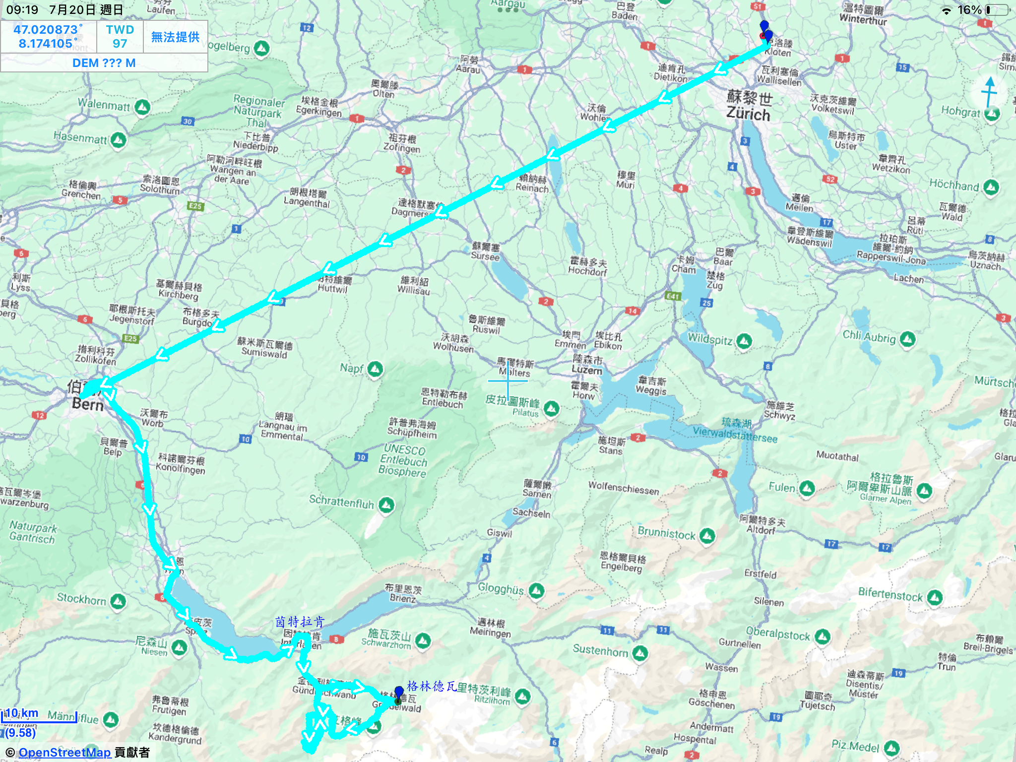 6/17曼谷機場(BKK)01:05泰航TG970>>6/17蘇黎世(ZRH)07:50>火車>茵特拉肯>火車>格林德瓦(Grindelwald)