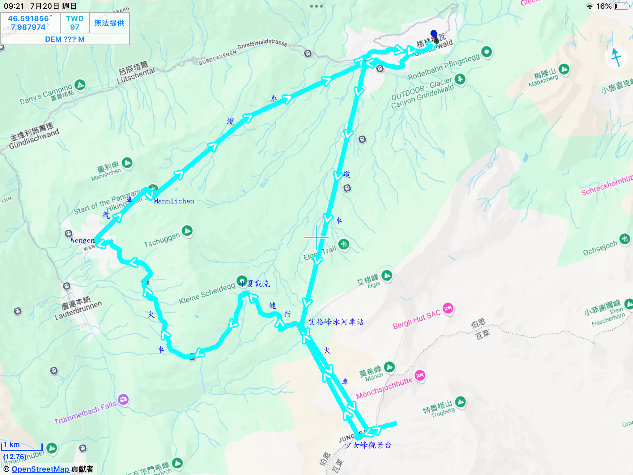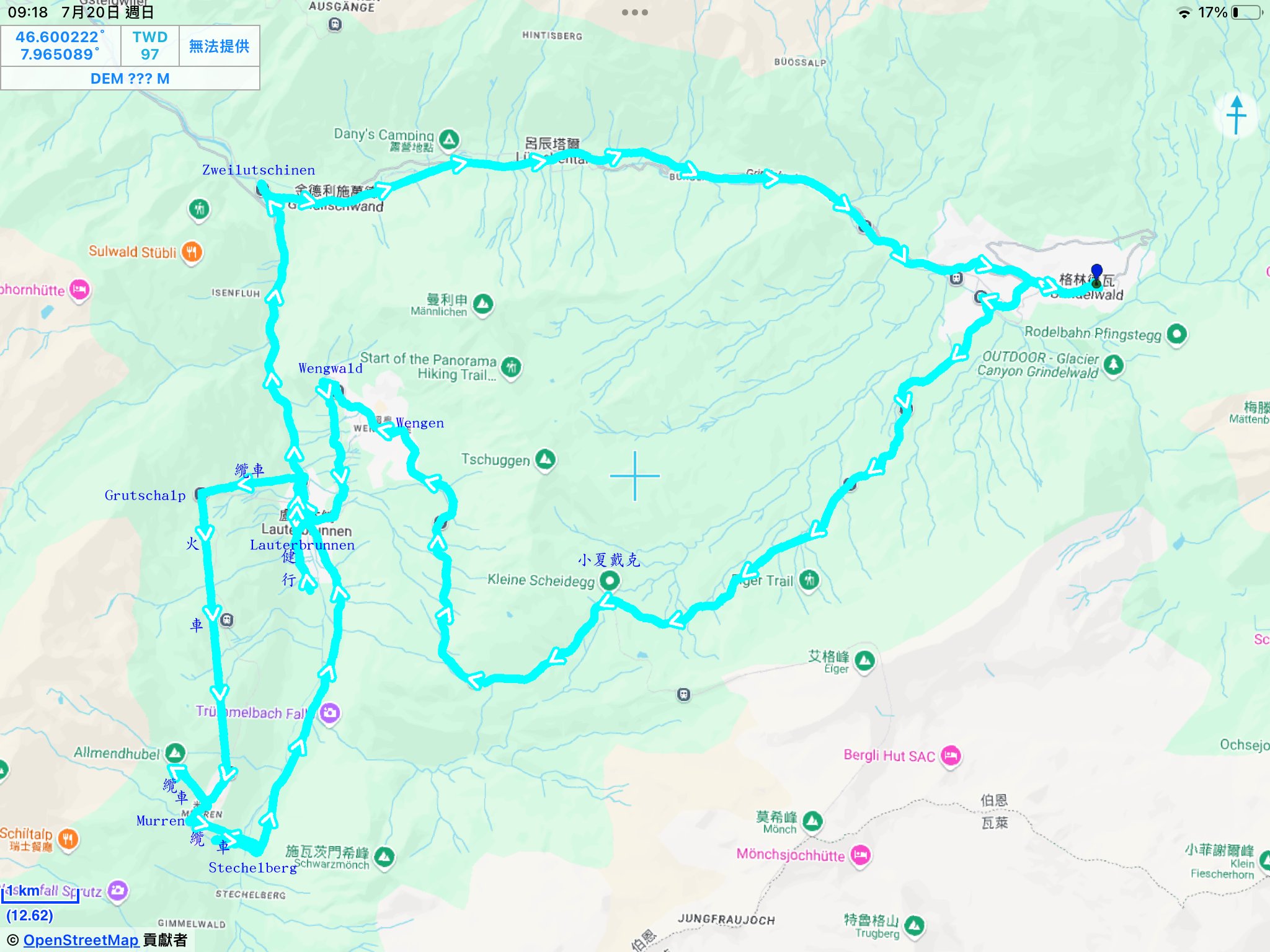 影片連結: 1.Firsr到Bachalpsee健行 2.Bachalpsee到Bort健行 3.Bort到格林德瓦滑板車