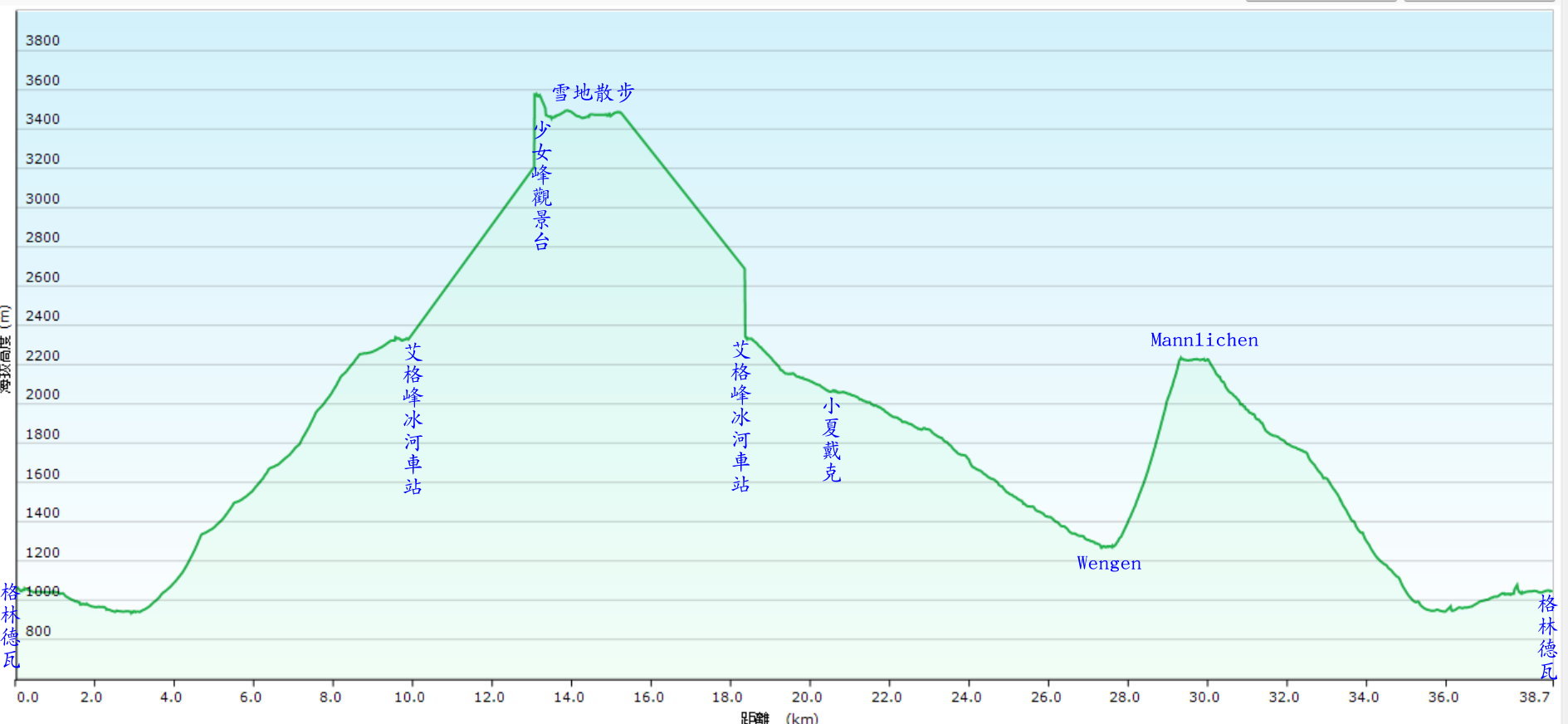 少女峰山區健行:格林德瓦>纜車>艾格冰河車站>火車>少女峰 ((Jungfraujoch Top of Europe ) >火車>艾格冰河車站>健行>小夏戴克健行>火車>溫根>纜車> Mannlichen>纜車>格林德瓦