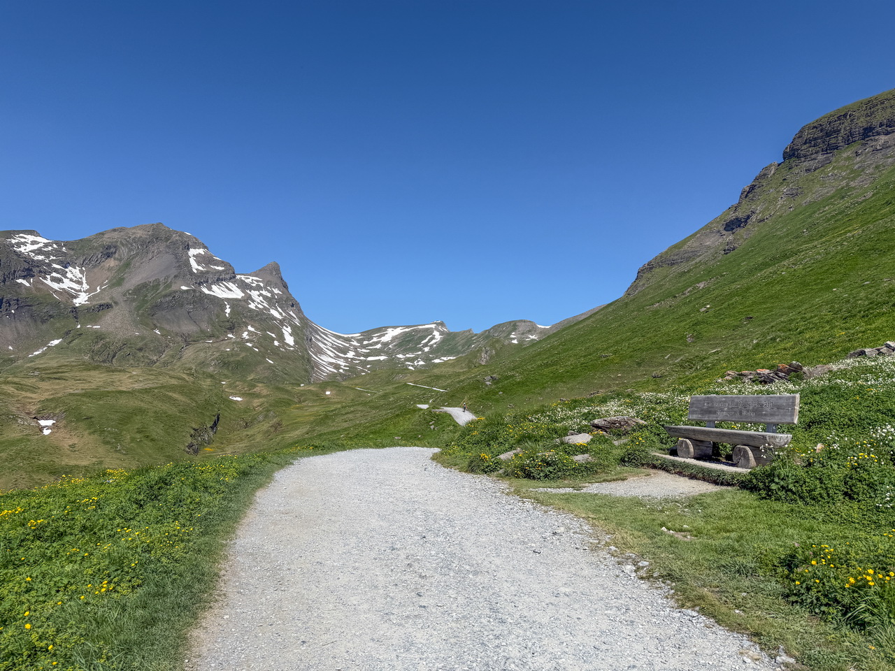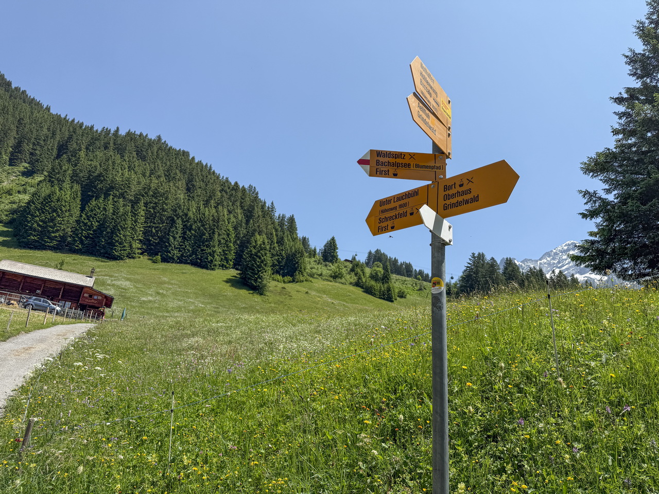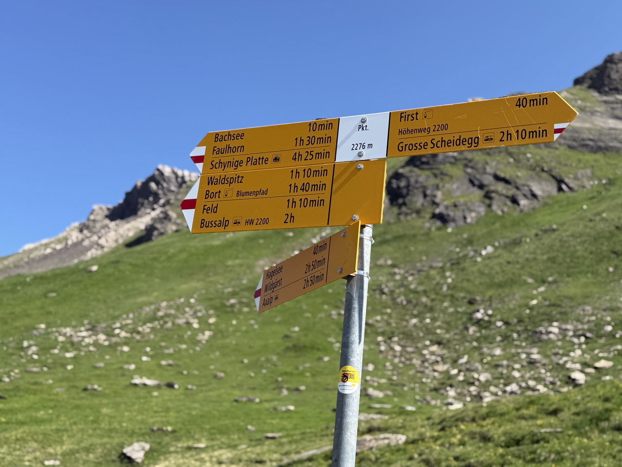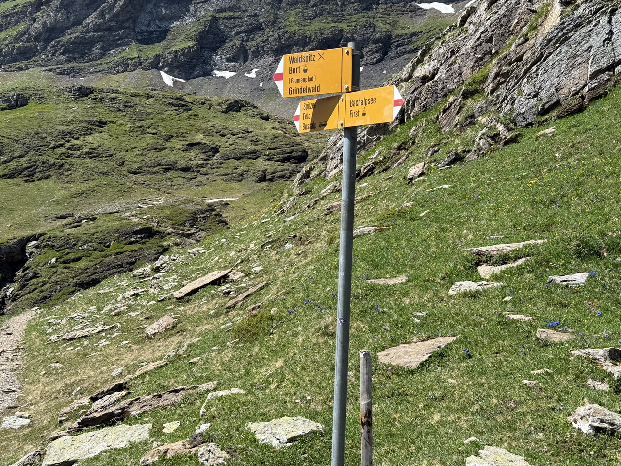 四號步道路徑,大約是在我們來 Bachalpsee 時,左側山谷的一條步道。沿路指標明確,途中只要有遇見和我反向而來的人,我也會慎重的向他們確認一下是不是往 Bort 的步道。