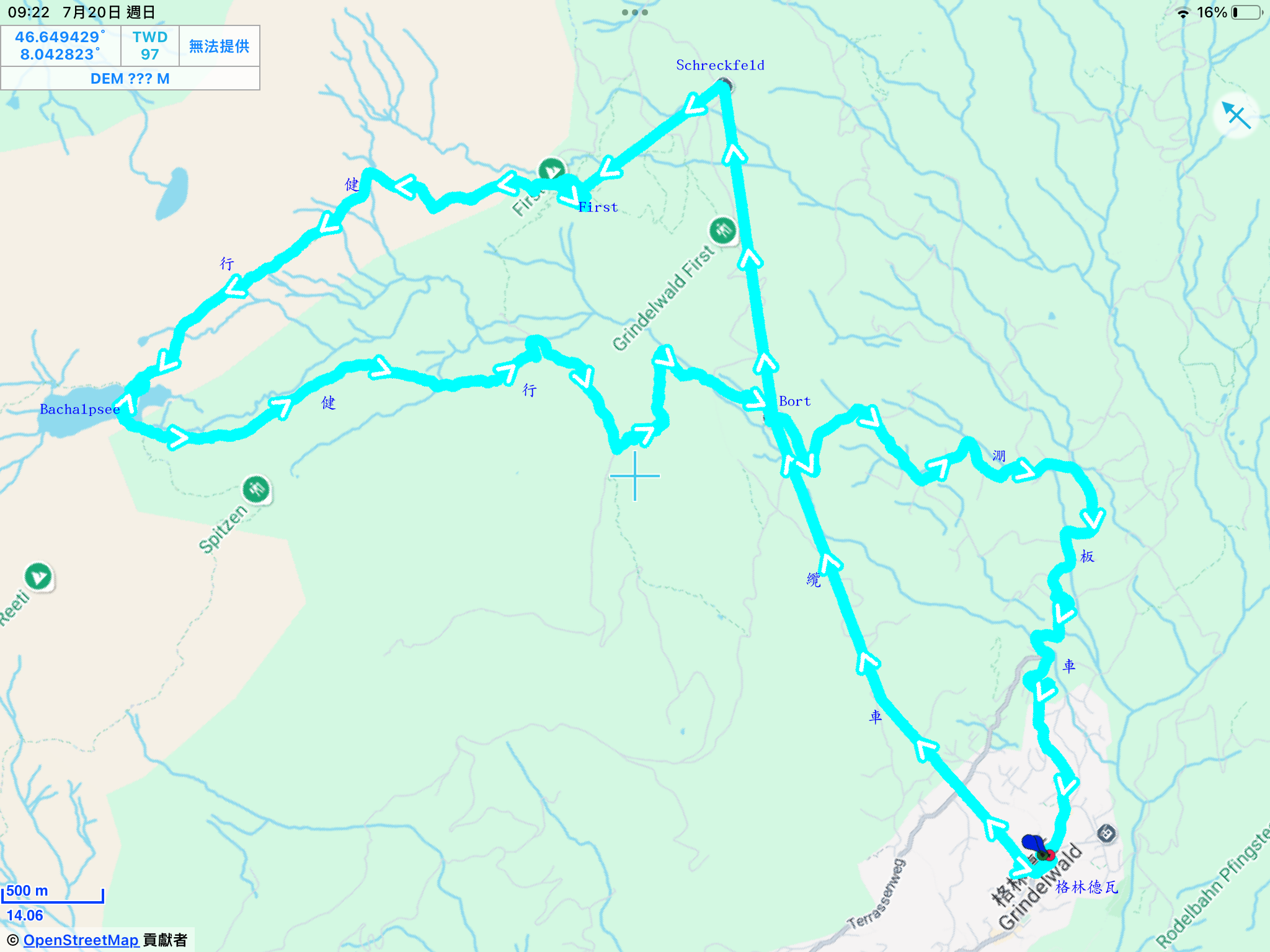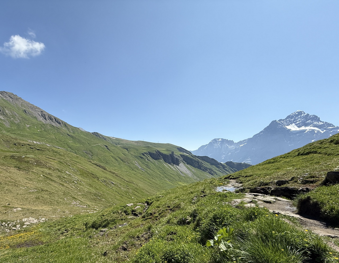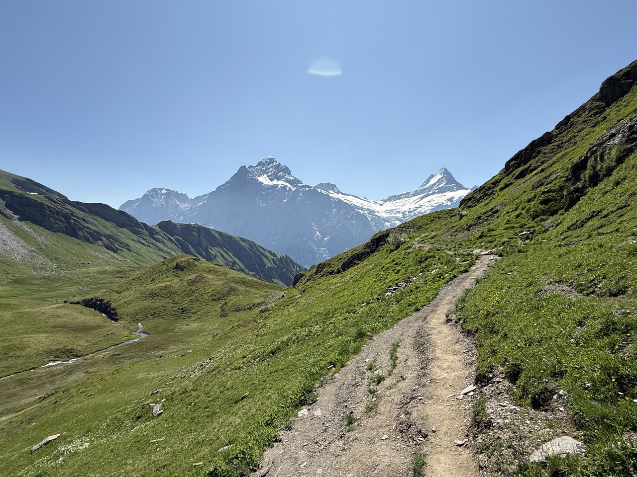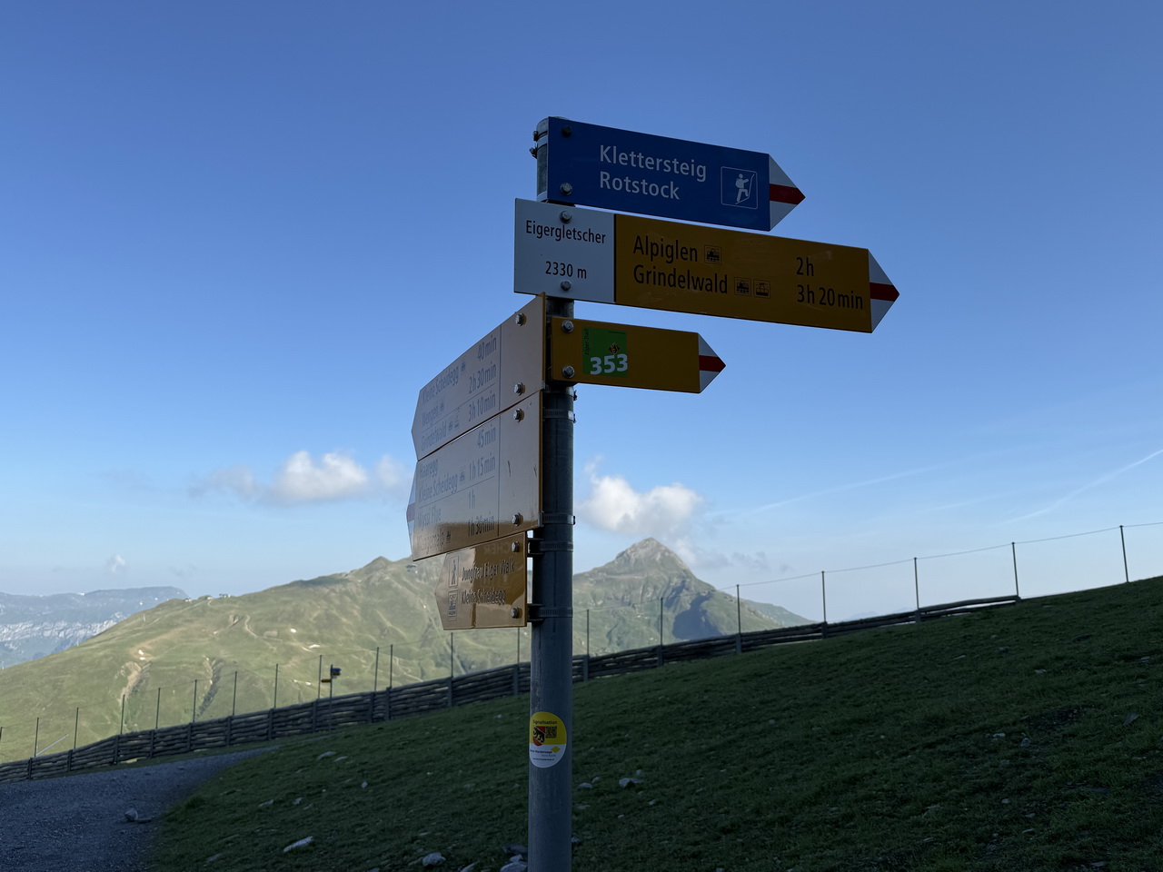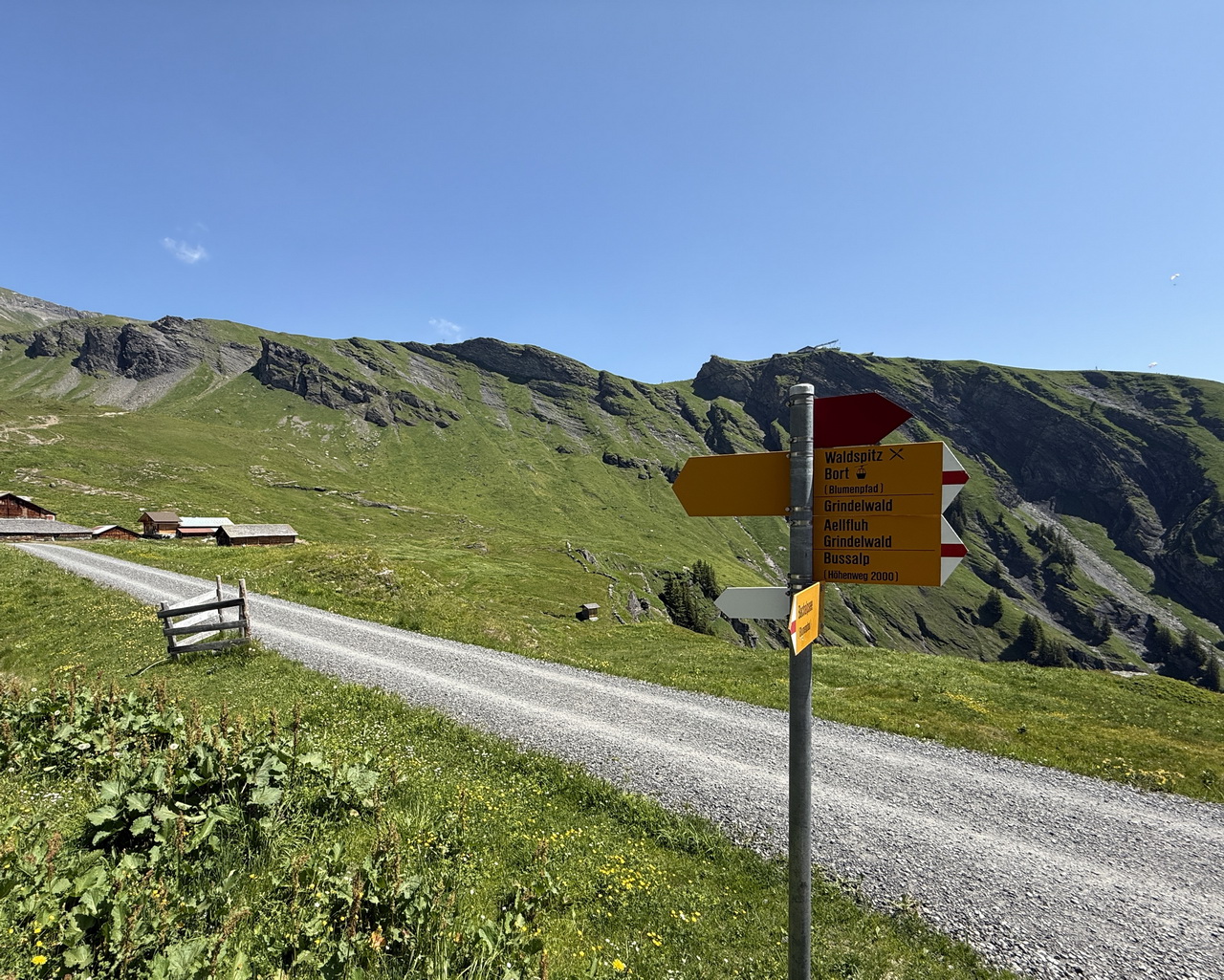 四號步道路徑,大約是在我們來 Bachalpsee 時,左側山谷的一條步道。沿路指標明確,途中只要有遇見和我反向而來的人,我也會慎重的向他們確認一下是不是往 Bort 的步道。