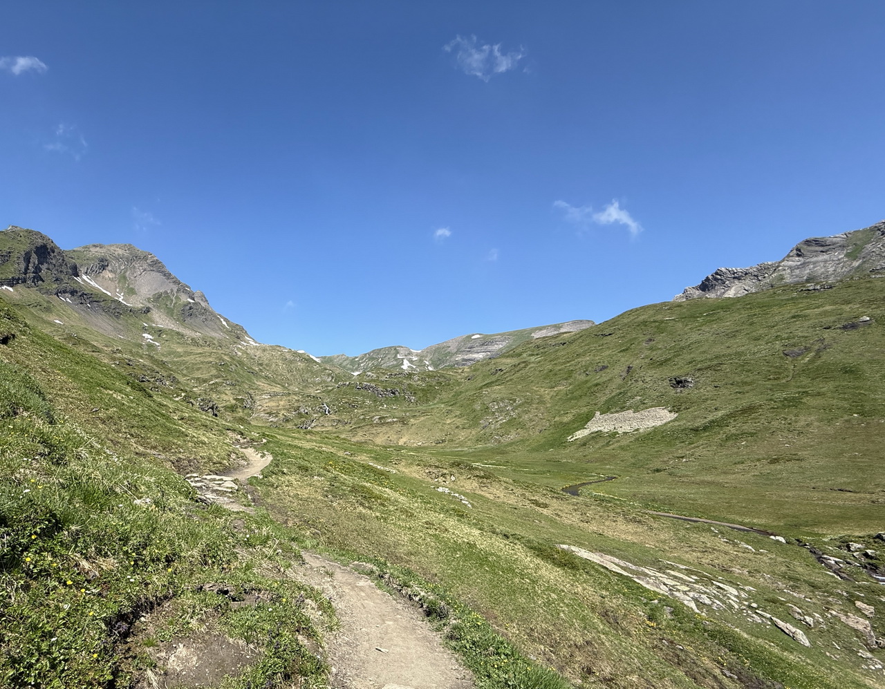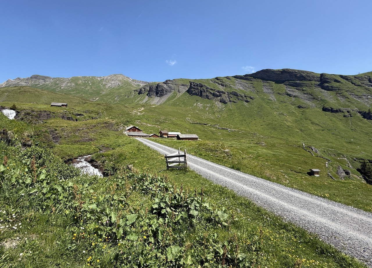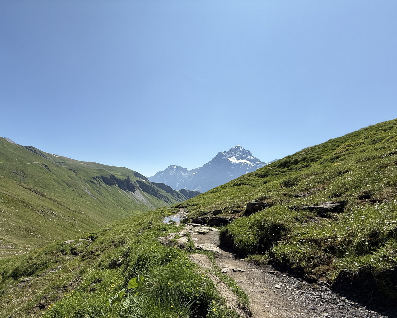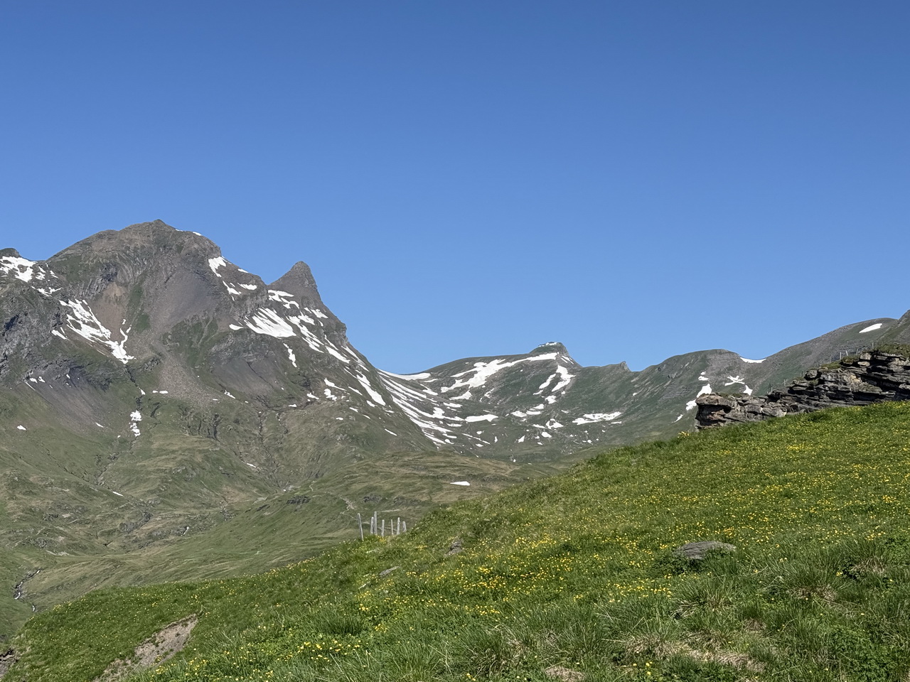 四號步道路徑,大約是在我們來 Bachalpsee 時,左側山谷的一條步道。沿路指標明確,途中只要有遇見和我反向而來的人,我也會慎重的向他們確認一下是不是往 Bort 的步道。