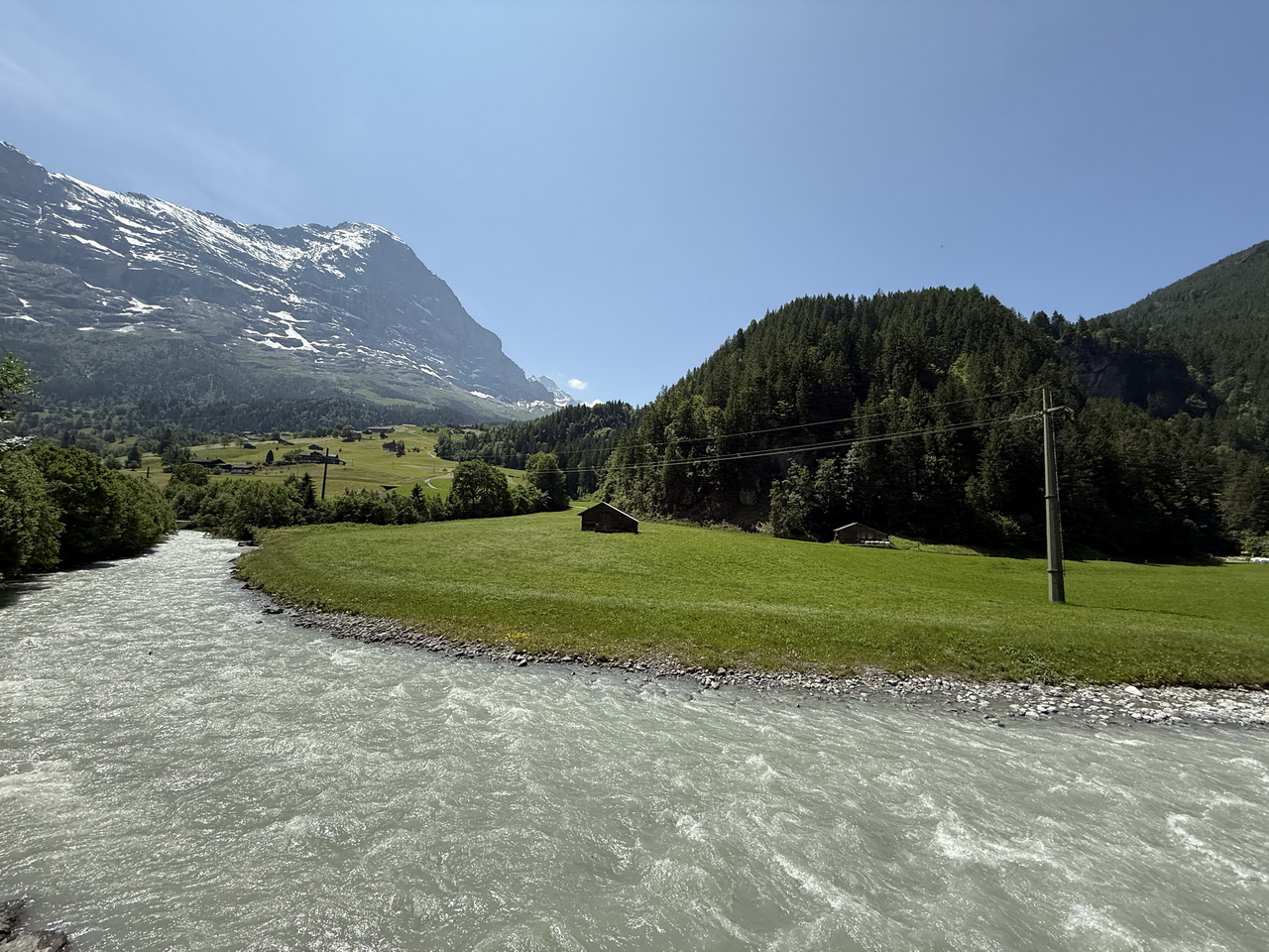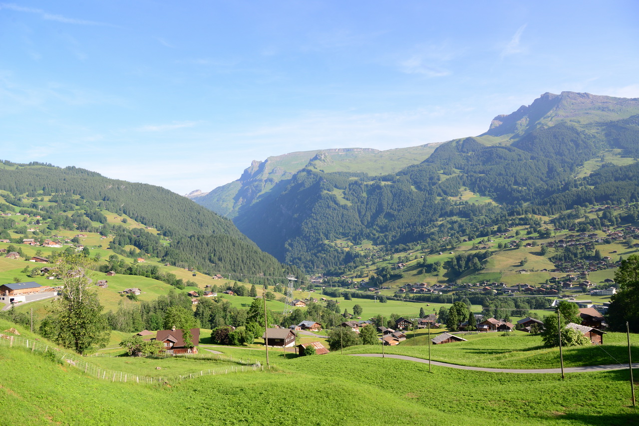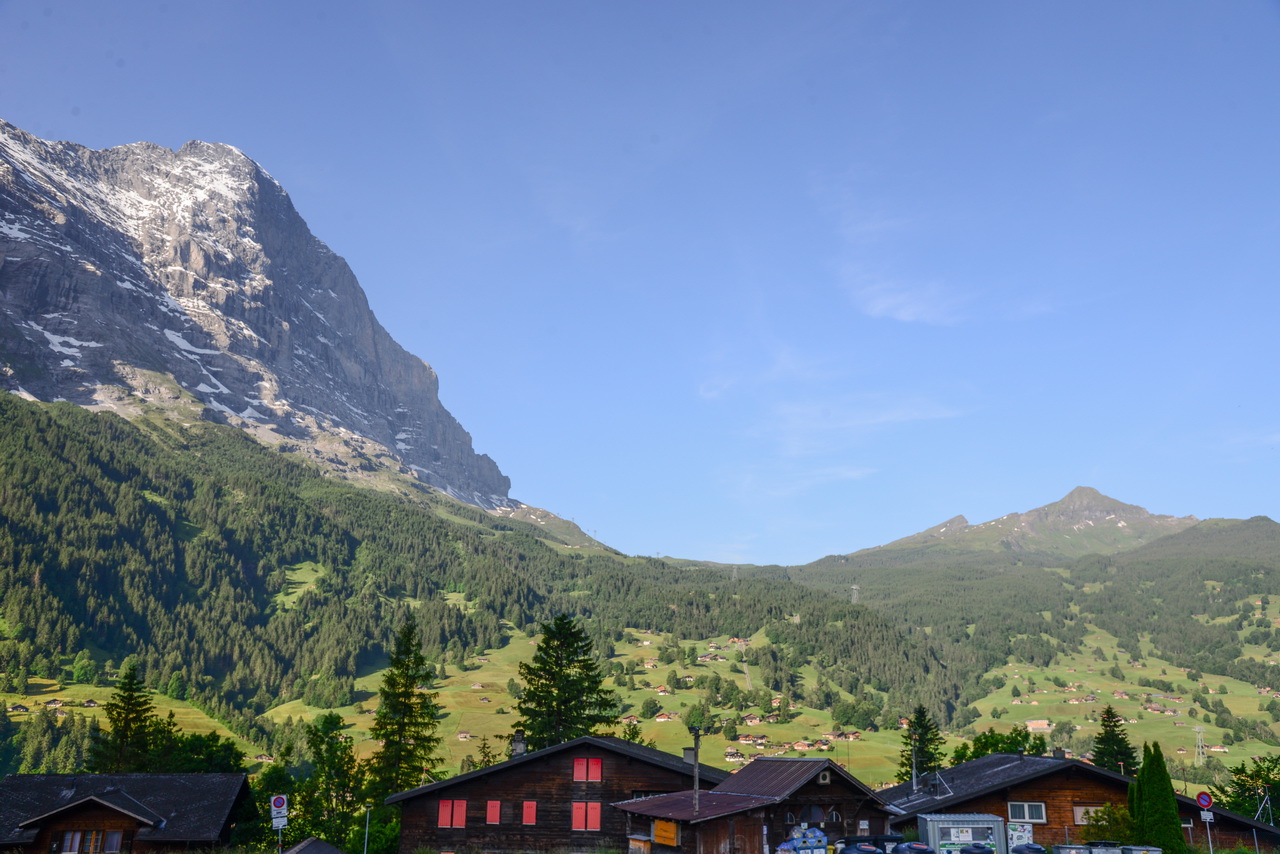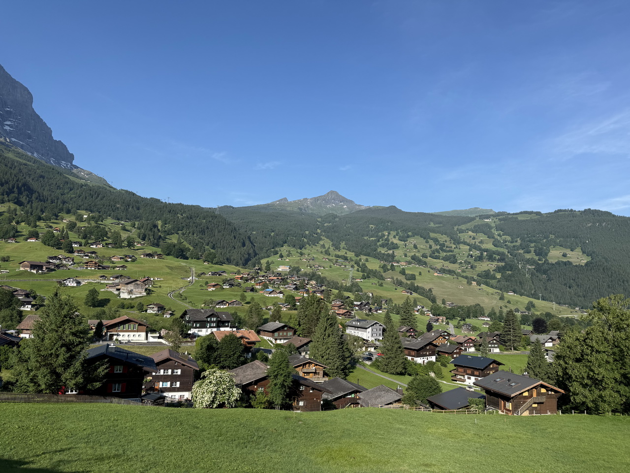 火車沿著山谷前行,進入格林德瓦地區,山坡的草地上,散落著許多小木屋,典型的瑞士小鎮風光,呈現眼前。今天就要開始探索如夢境般的小鎮。