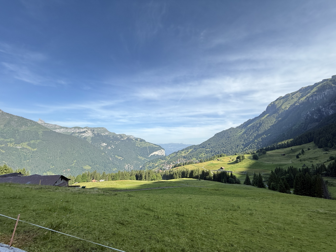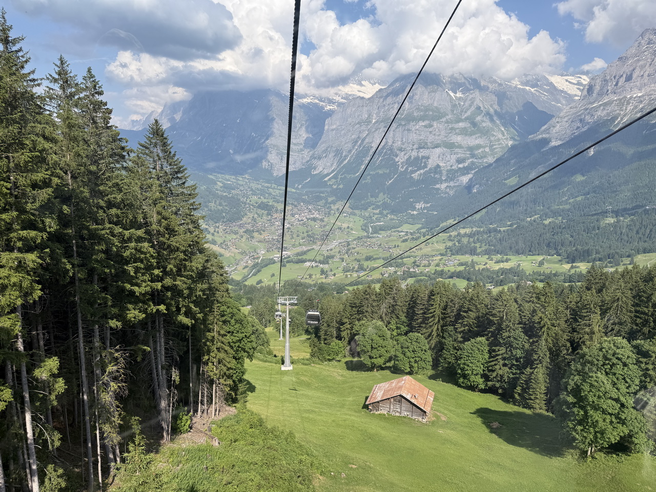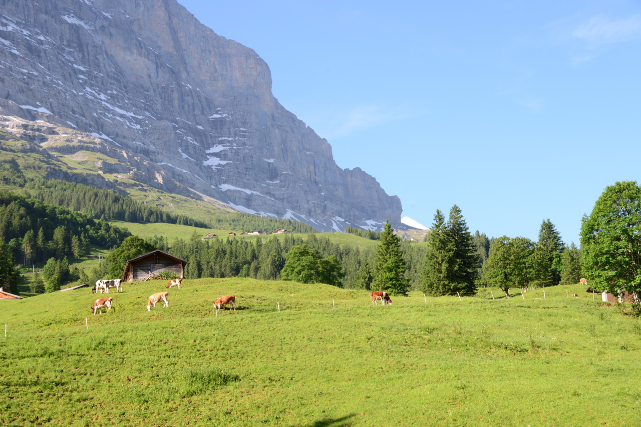 火車沿著山谷前行,進入格林德瓦地區,山坡的草地上,散落著許多小木屋,典型的瑞士小鎮風光,呈現眼前。今天就要開始探索如夢境般的小鎮。