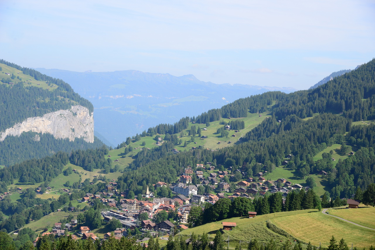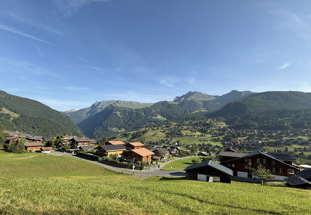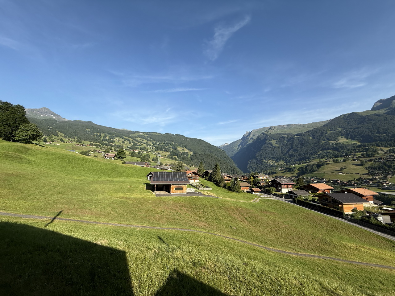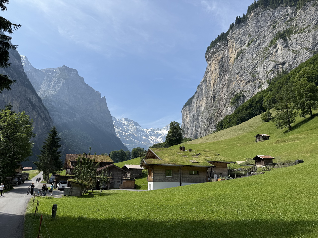 火車沿著山谷前行,進入格林德瓦地區,山坡的草地上,散落著許多小木屋,典型的瑞士小鎮風光,呈現眼前。今天就要開始探索如夢境般的小鎮。