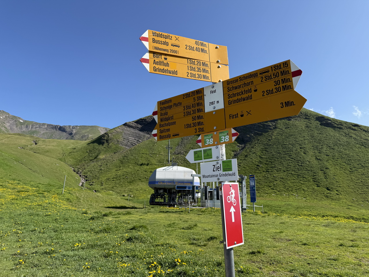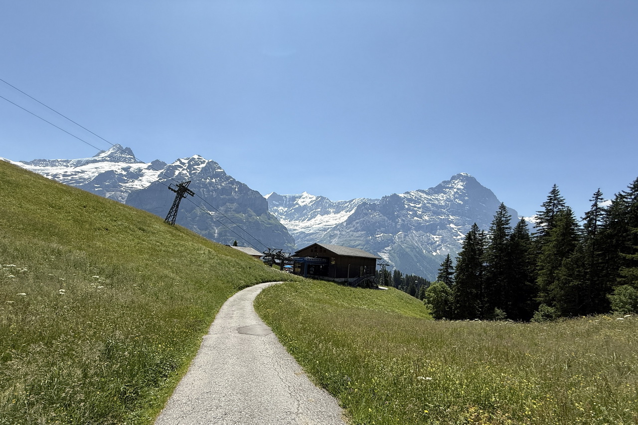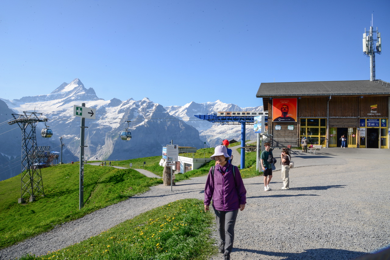下午的行程,我很想走另一條四號步道,接到 Bort 纜車站。我知道同伴們無法同行,經討論後,交待他們原路走回到 First 纜車站,然後在第二站 Bort 下纜車等我。再一起租山景滑板車,順著下坡就可以回到格林德瓦。