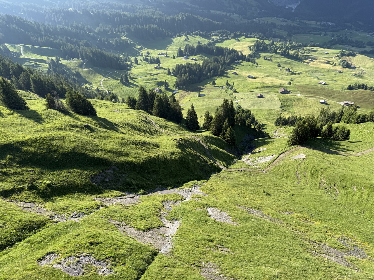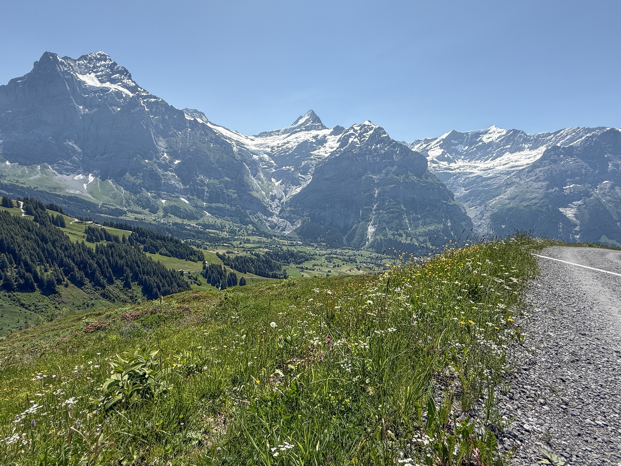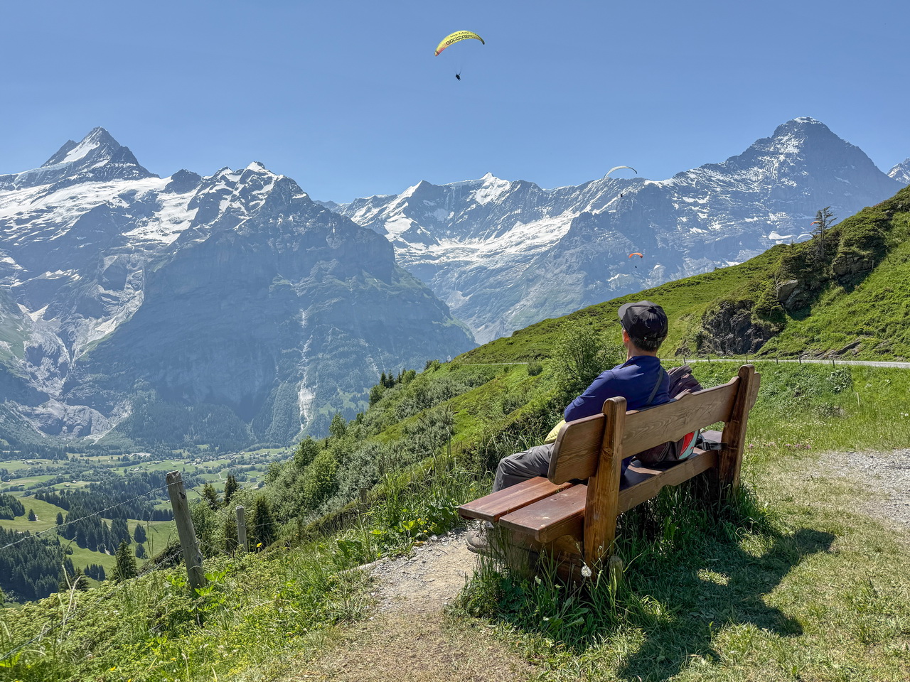 下午的行程,我很想走另一條四號步道,接到 Bort 纜車站。我知道同伴們無法同行,經討論後,交待他們原路走回到 First 纜車站,然後在第二站 Bort 下纜車等我。再一起租山景滑板車,順著下坡就可以回到格林德瓦。