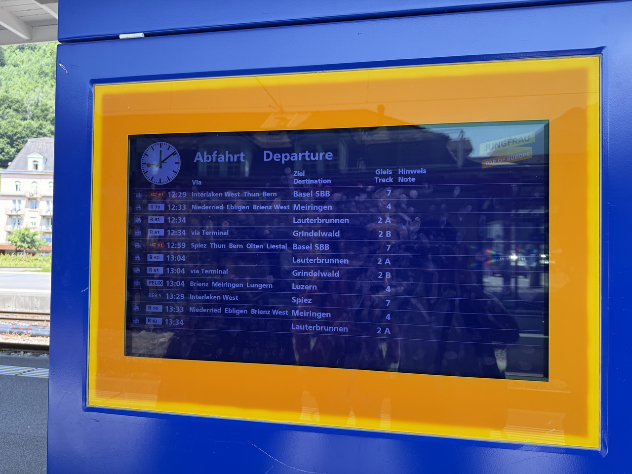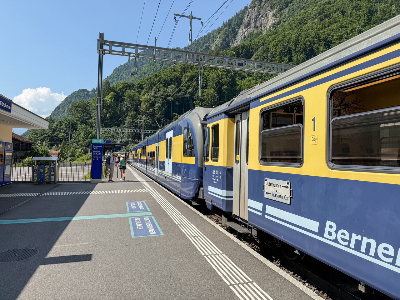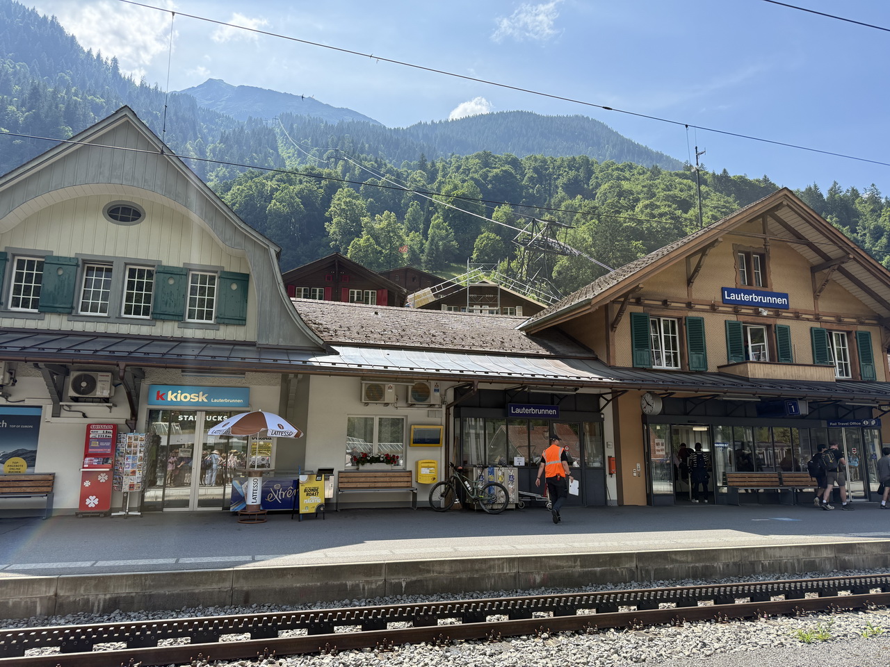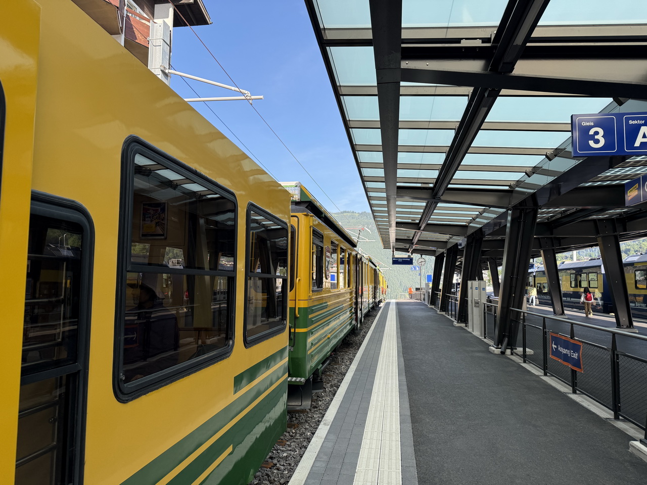 離開美麗的山谷小鎮,搭火車先往茵特拉肯方向,在 Zweilutschinen 換車轉往格林德瓦,完美完成一天的火車之旅。