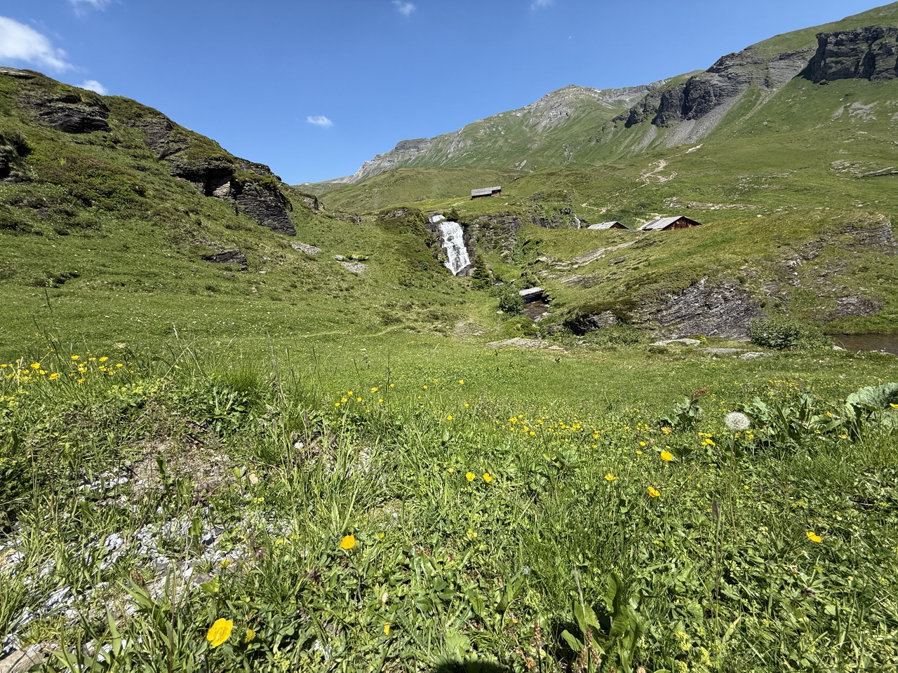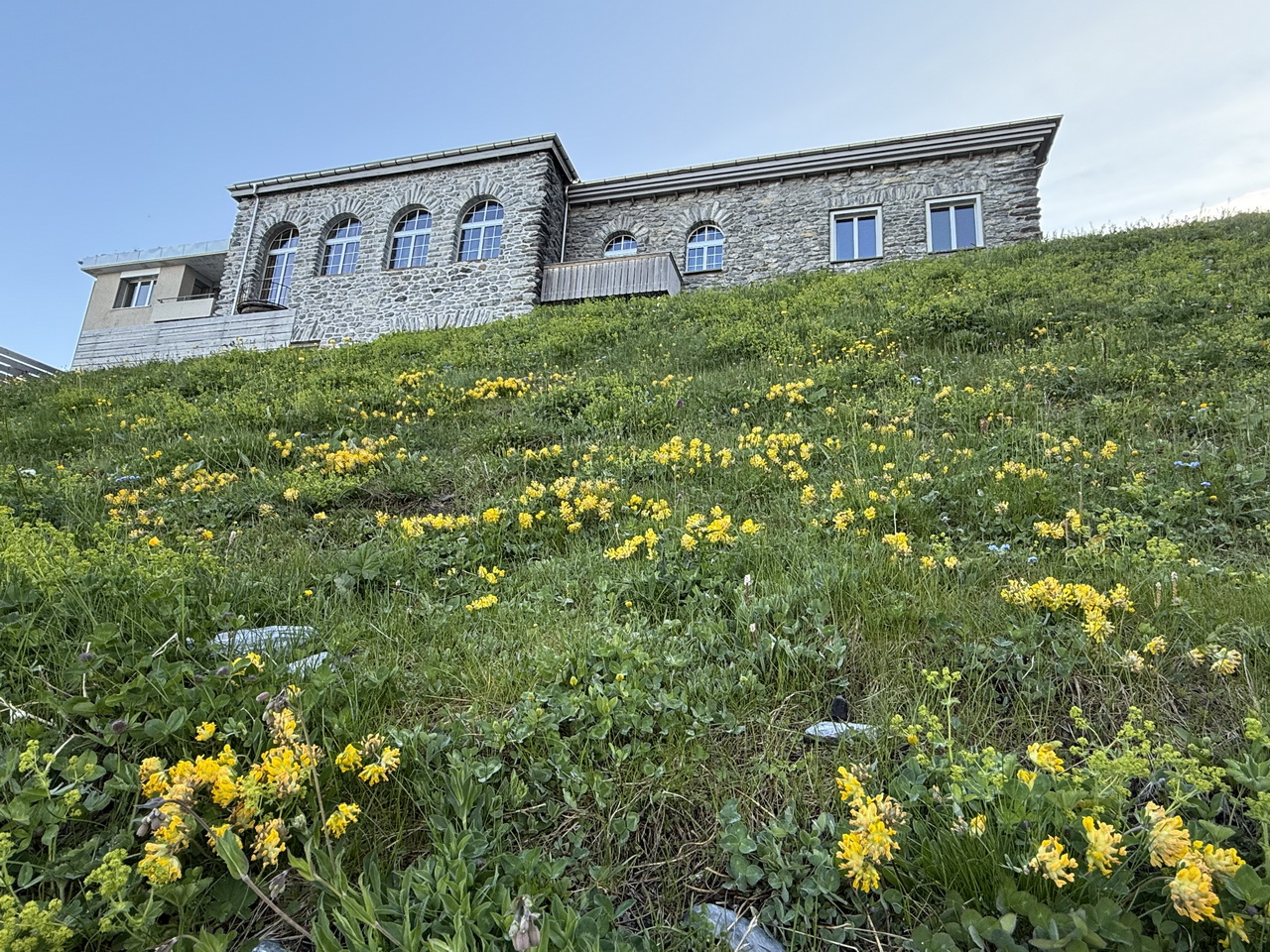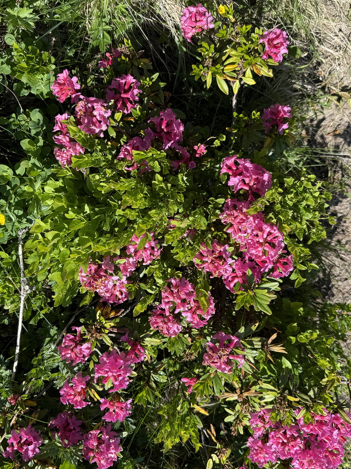 從 Bachalpsee 開始,步道一路幾乎是在山谷的低處,所以很接近流經山谷的小溪。土壤水份充分,整個山谷開滿了各式的野花,下方小花的相片,都是在這山谷中拍的。為了拍花,健行時間就稍稍多耽擱了一些。同伴們先抵達Bort 纜車站,就稍等了我一些時間,再一起在餐廳補充些飲料休息一下。