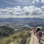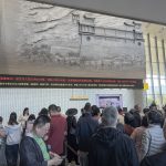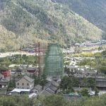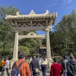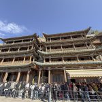 在觀景台眺望懸空寺,下方排隊等候進入寺內的隊伍,排了數百公尺長,我估計排在隊伍最後的人要進入寺內,可能還得等上二個小時。此時的我,慶幸還好沒有買到登臨寺內的票,不然就會面臨行程變更取捨的難題。