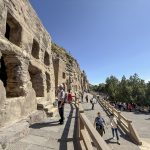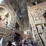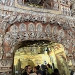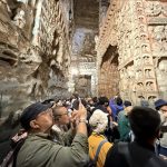 在著名的洞窟,窟內遊客眾多,例如第5、6窟等,往往在洞口就已寸步難行。後來我發現,這種擁塞的現象,團體旅遊團的導覽是一個很主要的原因。他們為了給團員解說,往往在入口處就開始解說,因此後方的遊客就會被堵在門外。然而在洞內卻仍有很大的空間,因此,我就觀察這個團體,看看什麼地方有比較大的空隙,穿過他們往裡面走,就會得到很大的空間,不必被人群擠著前進。