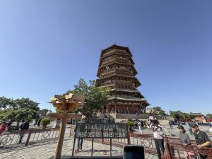 下午前往應縣木塔,位於朔州應縣,離大同市真的好遠,如果不是包車,一天走這兩個行程真的非常趕。木塔始建於遼代,大約是(1056年),塔高67.31公尺,是中國現存最古老、最高的木塔。一樓內部正中有一尊高約10米的釋迦造像,頂部建有藻井。應縣木塔內共有54塊明、清、民國時期的楹聯和牌匾。木塔匾額中最古老的是釋迦塔、康熙六十一年的萬古觀瞻、明成祖朱棣的峻極神工、明武宗朱厚照的天下奇觀等。