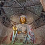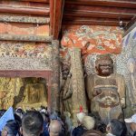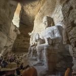 第十九窟:主佛像跏趺坐高16.8公尺,是雲崗第二大佛,耳輪齊肩。