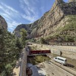 計程車司機說遊完懸空寺,要搭車回遊客中心,再搭車前往恒山。實做之後,才發現錯了,還好這段重複的路並不太遠。在懸空寺就有往恒山岳門灣的車,搭這一班就可以抵達恒山的纜車站。如果不想搭纜車上山,想要走路登恒山的話,就要搭車到恒宗。