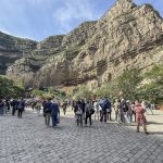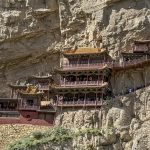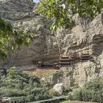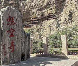 繼續顧用昨天的計程車,到了恒山遊客中心,司機還告訴我們前往懸空寺和恒山搭擺渡車的注意事項。本來計劃要買票登上懸空寺的,來到售票口,當日的票已經售完。看來想要買到票,必需得提前在網路預約購票才有可能。搭車來到懸空寺,遊客非常多。沒有買到登臨懸空寺的票,就只能在對岸遠望構築在峭壁間的懸空寺。懸空寺以獨特的建築風格,建於獨的山崖上,被稱之為掛在懸崖上的寺。刻有懸空寺的大石,和對岸的寺構成的圖,就成為遊客排隊拍照的重要任務。