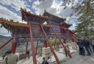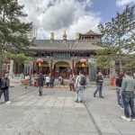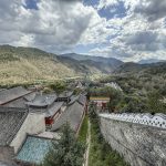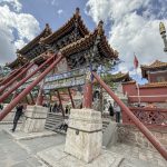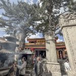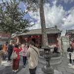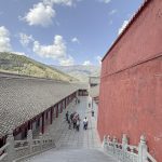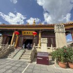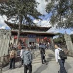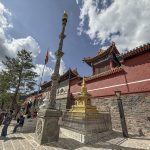 下黛螺頂後前次往菩薩頂,此寺建於北魏孝文帝時期,為五台山最大的藏傳佛教寺院。從大照壁上行,為108個石階,牌樓中門為康熙皇帝御題「靈峰勝境」。相傳清朝在位皇帝,曾多次來菩薩頂禮拜。