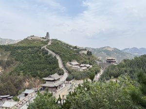 回民宿取回行李,搭上一部回頭車直接前往雁門關。沒有前往任何一個朝台,是來五台山美中不足的地方。在離開五台山景區之前,請司機找一個安全可暫時停車,又可以遠眺東台山的地方,讓我拍了一張相片乾過癮。