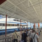 首先,在金門尚義機場,下飛機領到行李,走出航厦,就要快速找到負責接駁的車輛。到了水頭碼頭,有專人幫忙領取船票,然後自行通過安檢通關等程序。為了在廈門的五通碼頭能爭取時間,快速通關,在水頭碼頭上船時就要講究一下方法。依黃兄事前的指導,依序上船後,找到座位稍稍放鬆一下,等船在五通碼頭靠岸,再進行下一步驟。