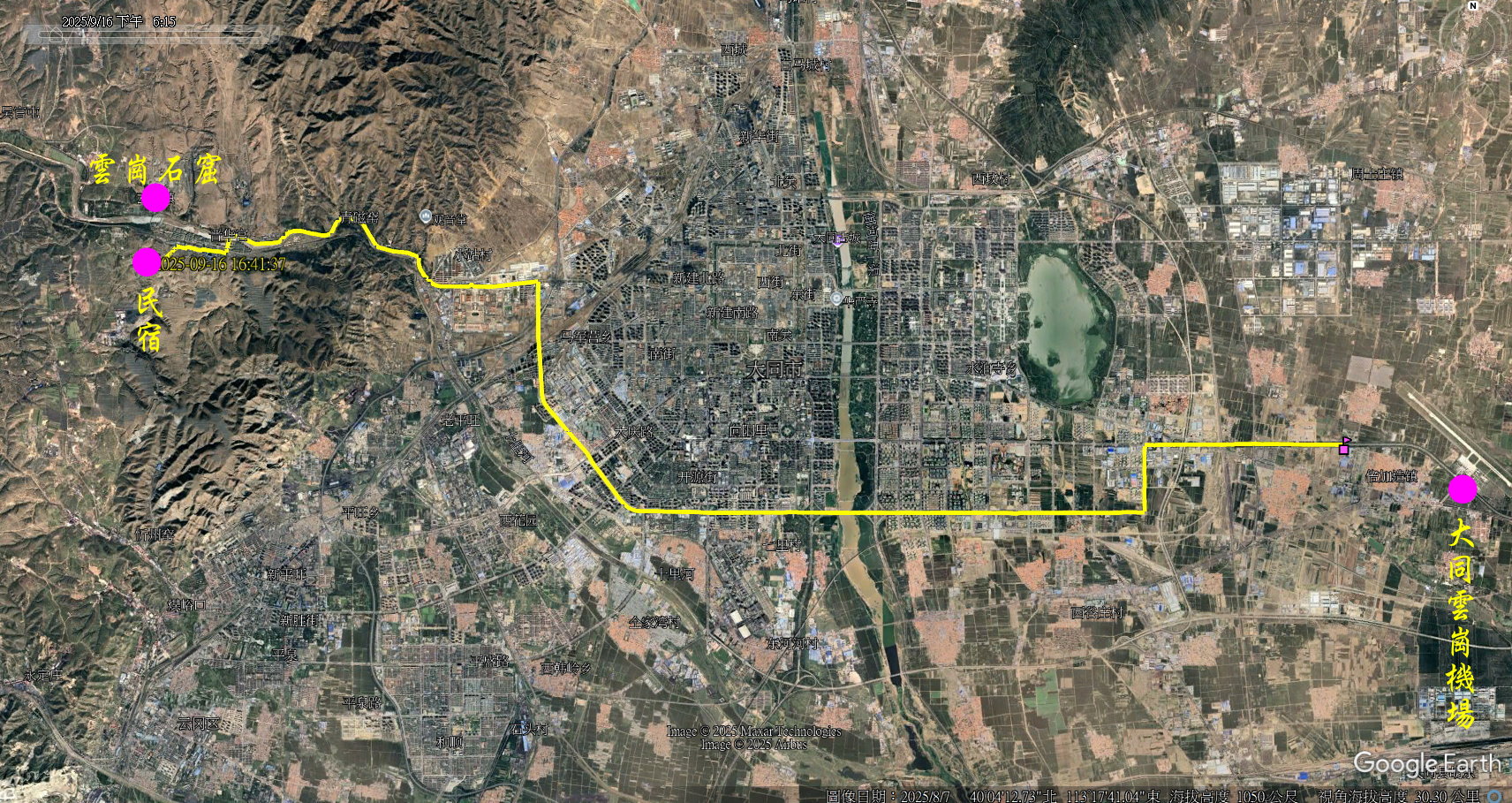 至此,最緊張的時刻已完成,就等飛機安全飛抵山西大同雲崗機場。今晚的住宿地點離機場有點遠,不過離明天要去的雲崗石窟確很近。搭公共交通工具,需要近三小時左右,臨時決定改搭計程車前往。民宿位在晉華宮媒礦區內,地點偏僻,還好民宿主人願意在明天早上載我們到雲崗石窟景區內。