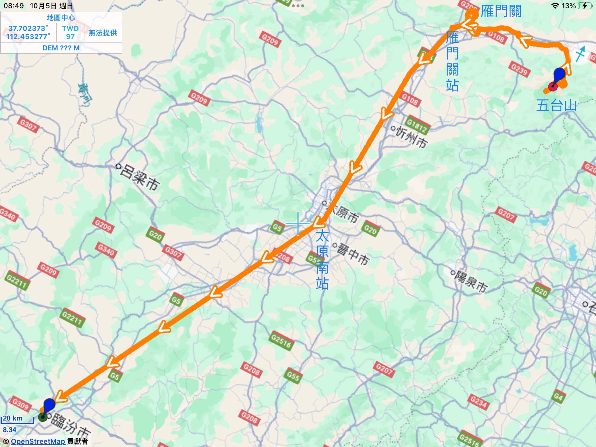 五台山→雁門關→雁門關高鐵站→臨汾西站。宿:臨汾西