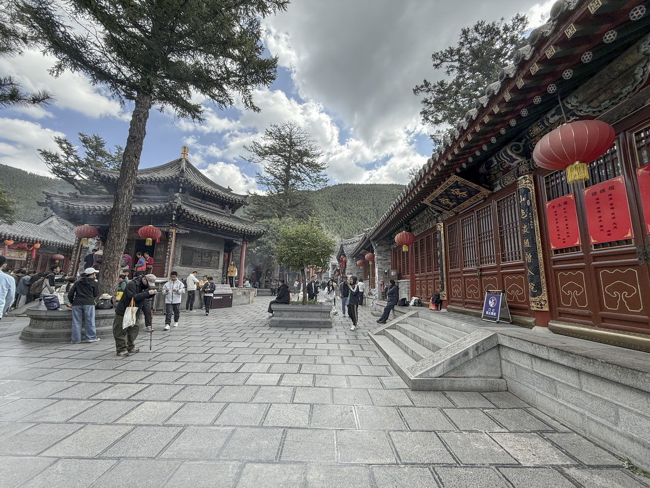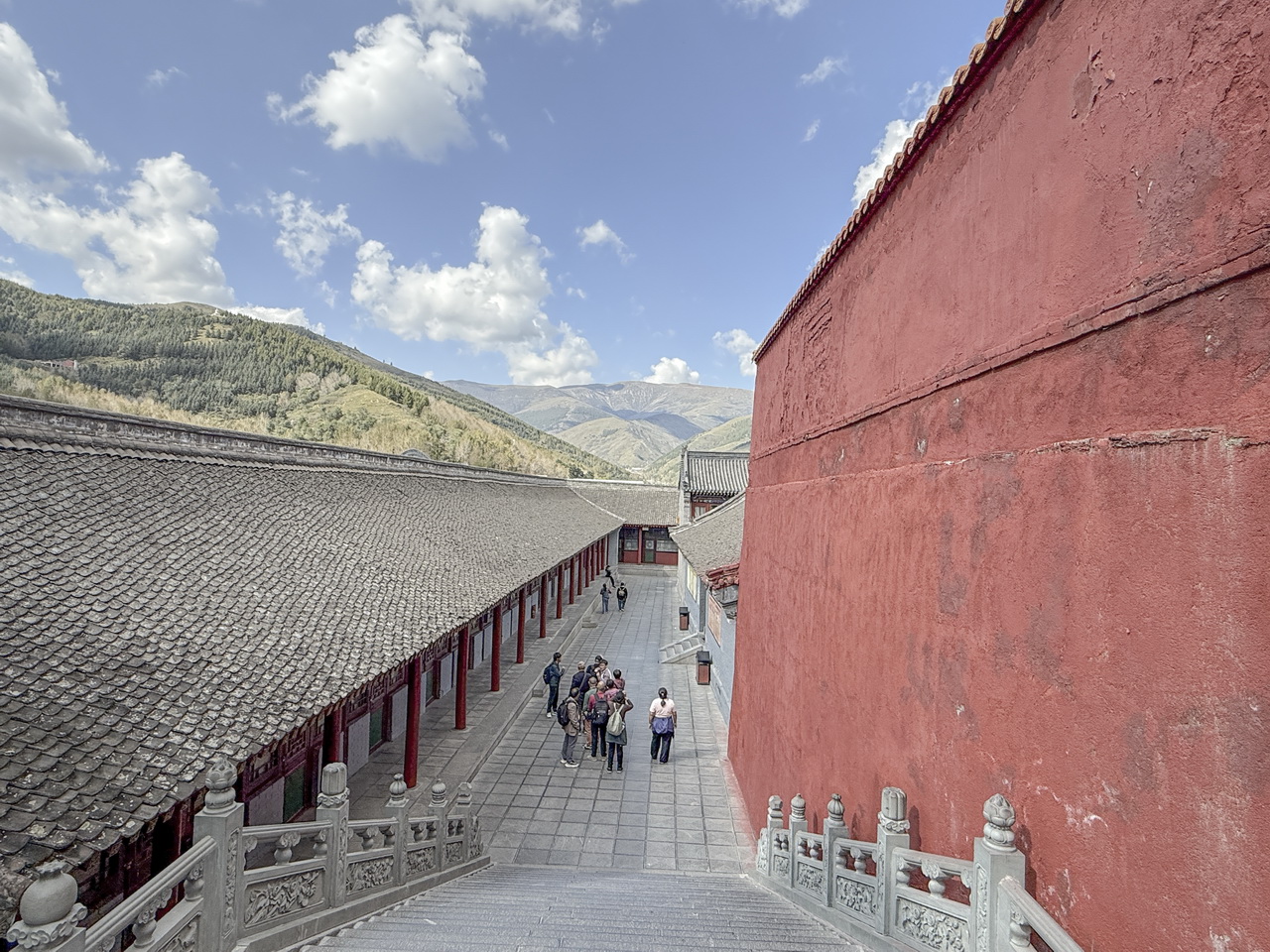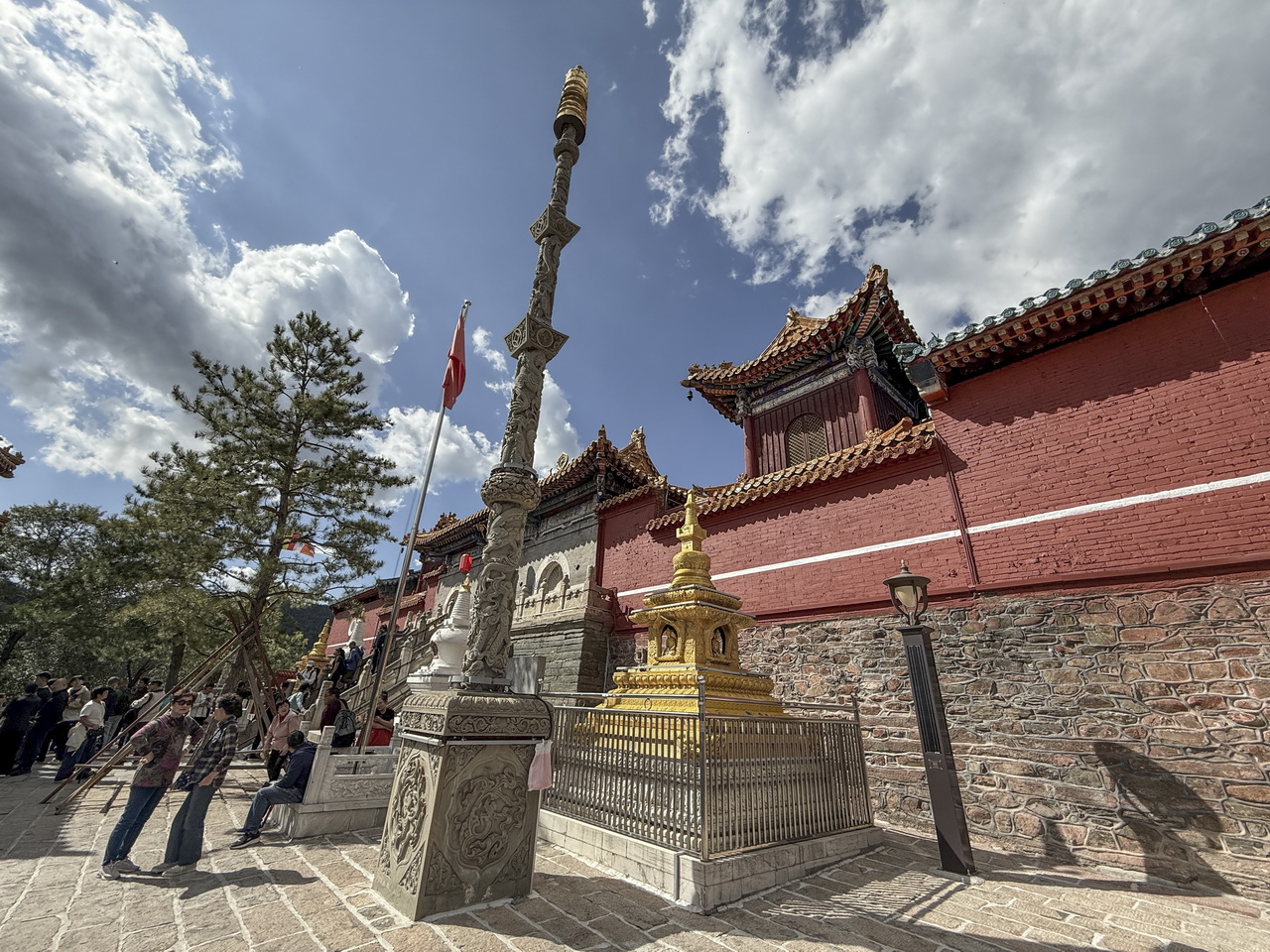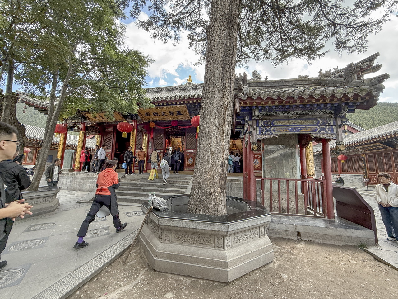 下黛螺頂後前次往菩薩頂,此寺建於北魏孝文帝時期,為五台山最大的藏傳佛教寺院。從大照壁上行,為108個石階,牌樓中門為康熙皇帝御題「靈峰勝境」。相傳清朝在位皇帝,曾多次來菩薩頂禮拜。