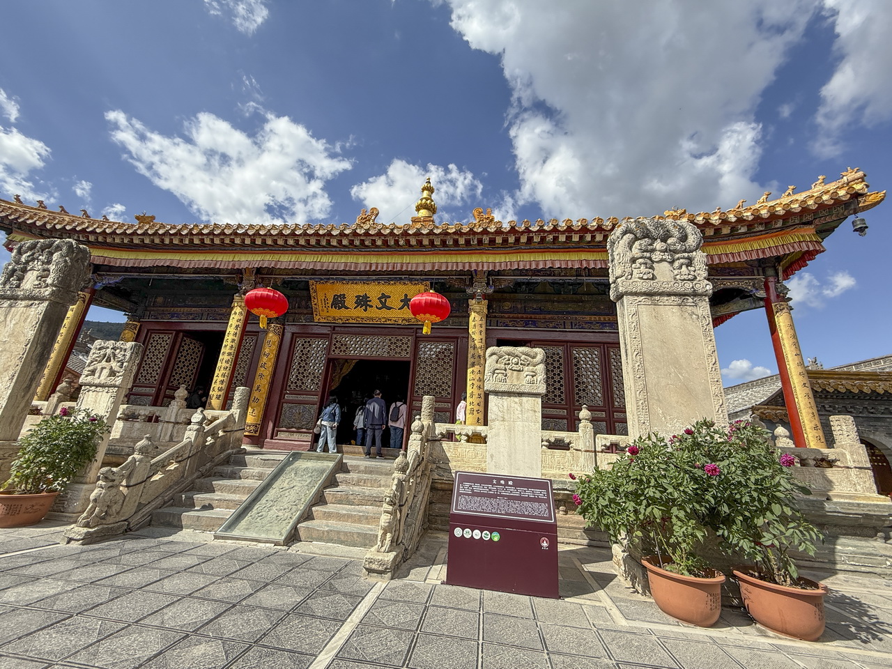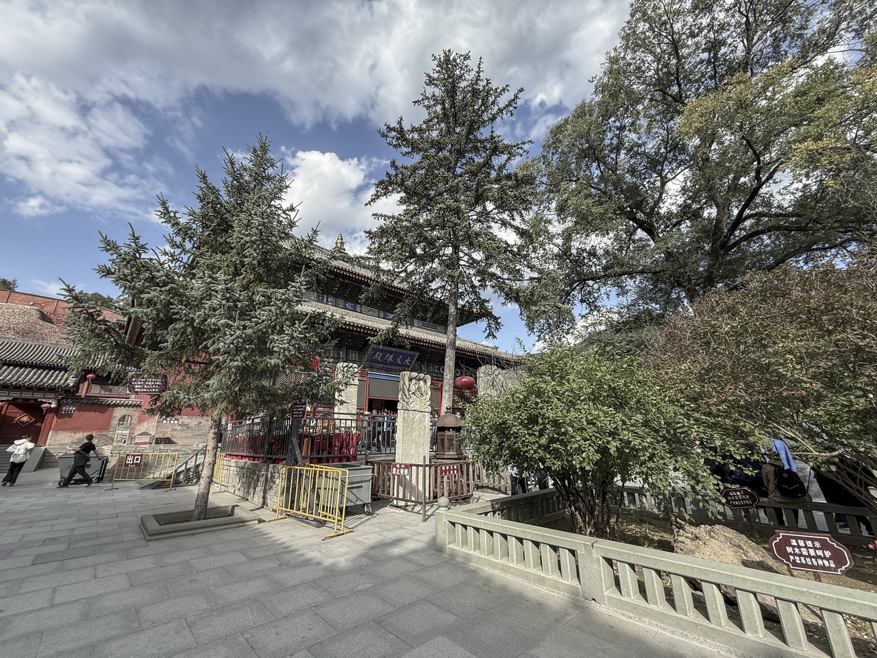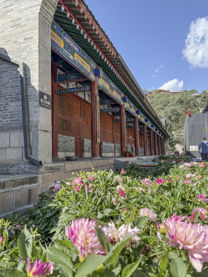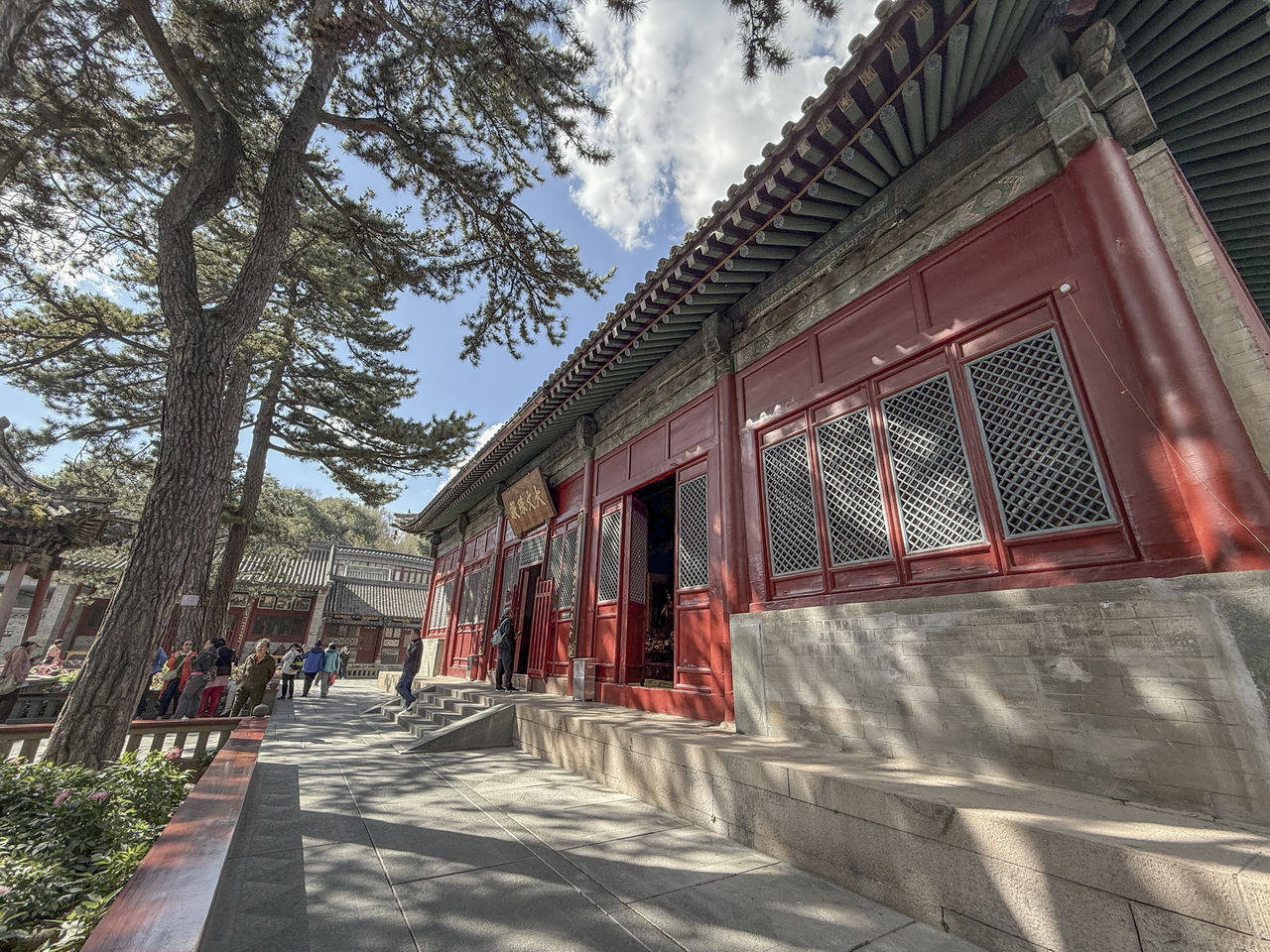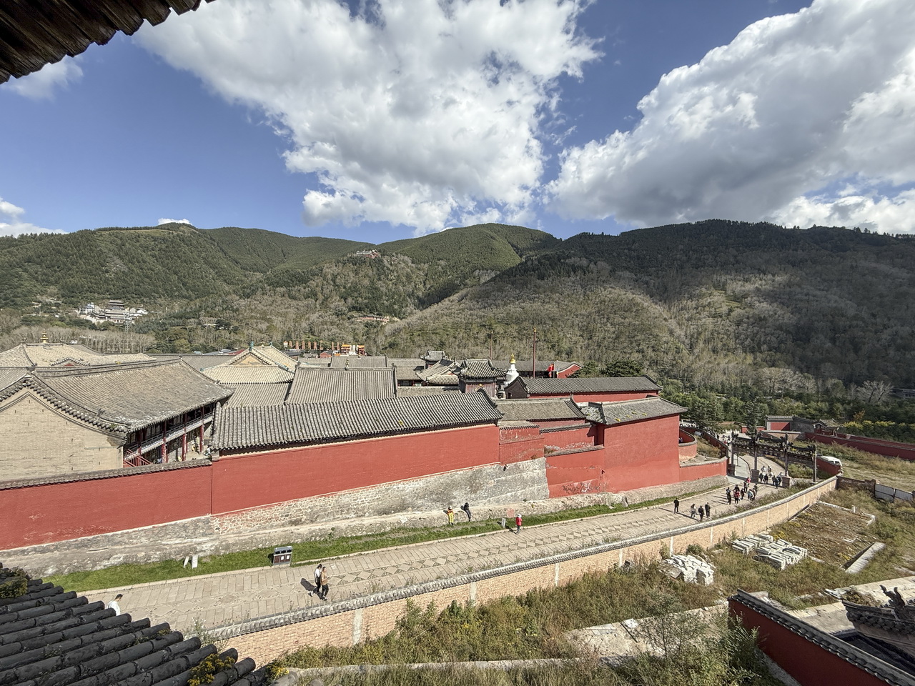 下黛螺頂後前次往菩薩頂,此寺建於北魏孝文帝時期,為五台山最大的藏傳佛教寺院。從大照壁上行,為108個石階,牌樓中門為康熙皇帝御題「靈峰勝境」。相傳清朝在位皇帝,曾多次來菩薩頂禮拜。