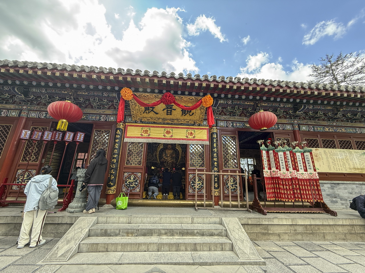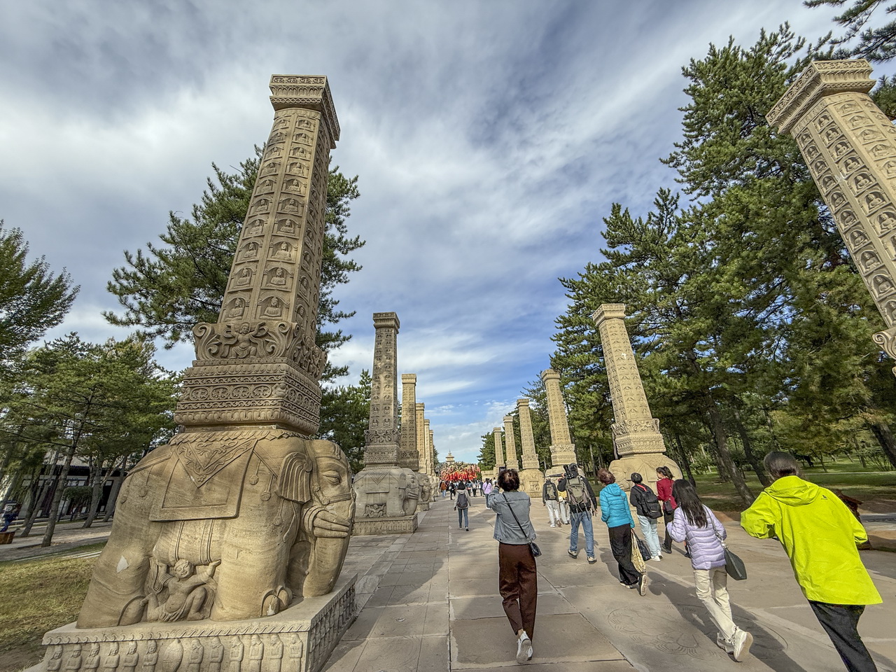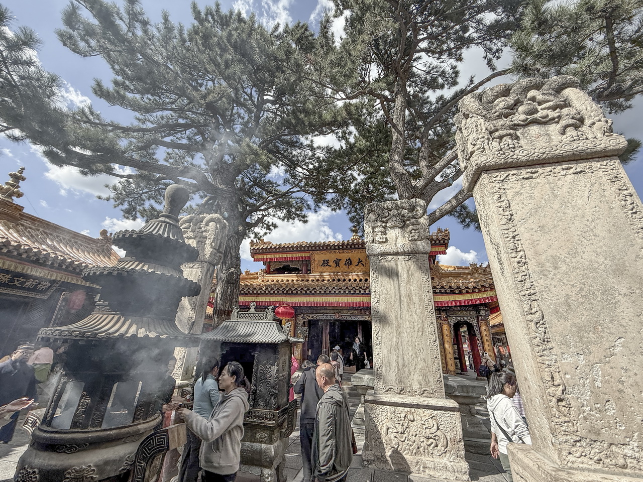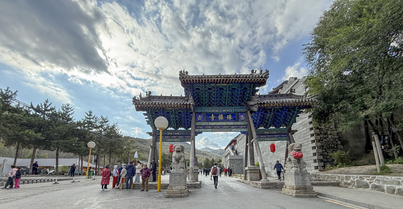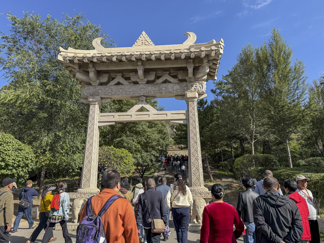 下黛螺頂後前次往菩薩頂,此寺建於北魏孝文帝時期,為五台山最大的藏傳佛教寺院。從大照壁上行,為108個石階,牌樓中門為康熙皇帝御題「靈峰勝境」。相傳清朝在位皇帝,曾多次來菩薩頂禮拜。