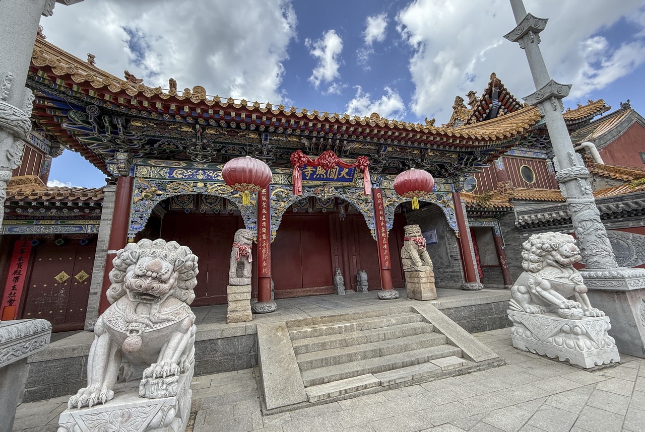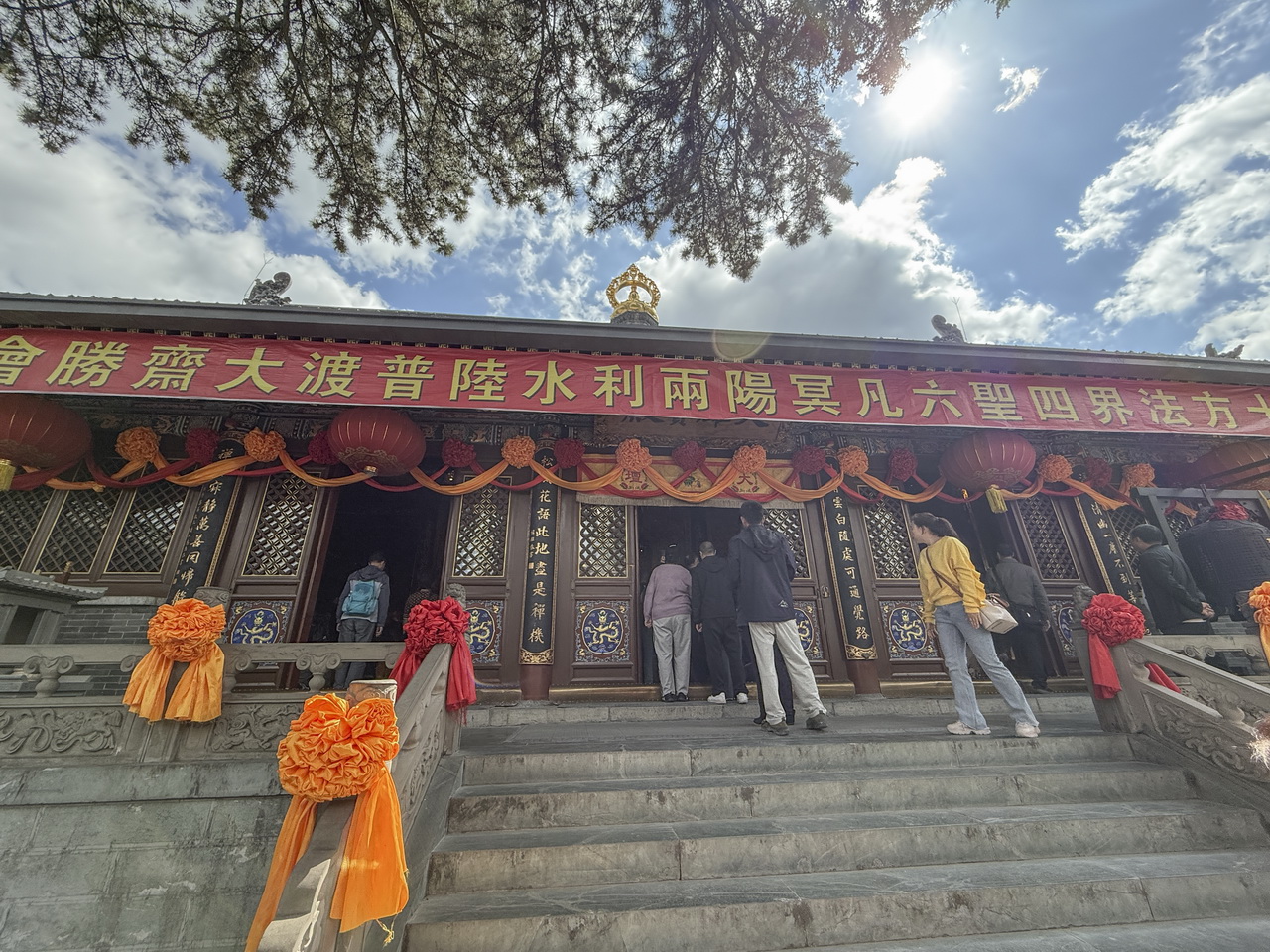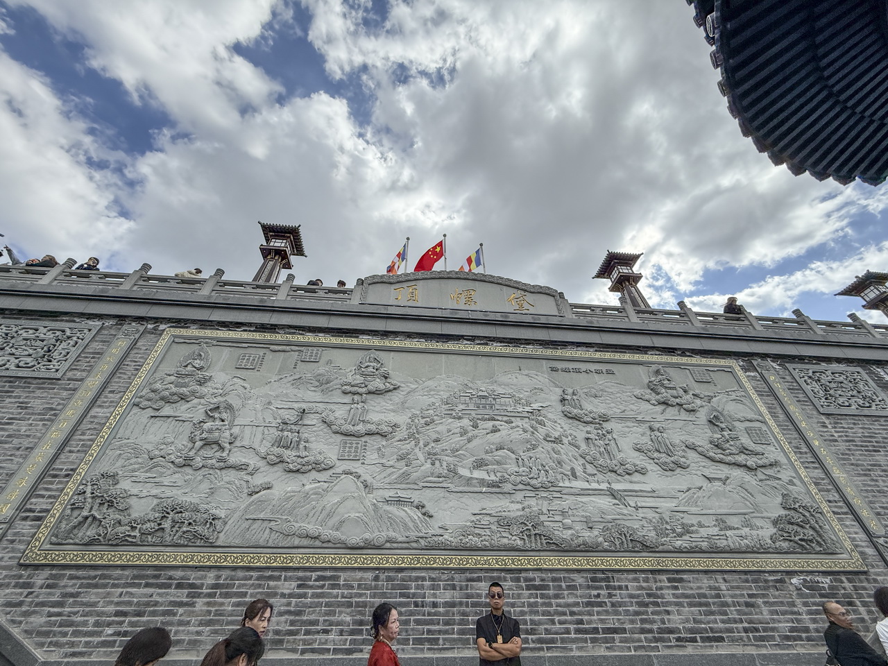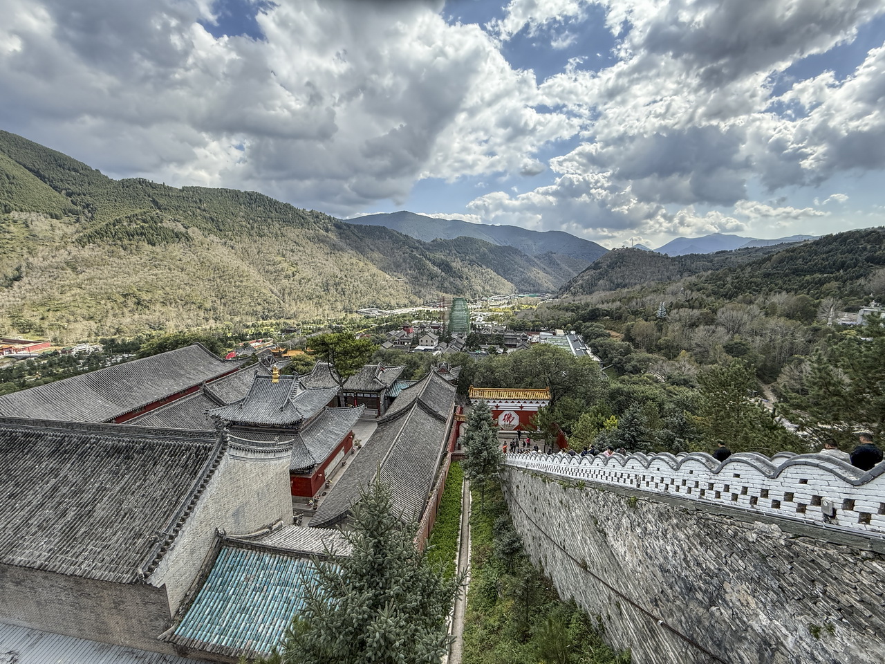 下黛螺頂後前次往菩薩頂,此寺建於北魏孝文帝時期,為五台山最大的藏傳佛教寺院。從大照壁上行,為108個石階,牌樓中門為康熙皇帝御題「靈峰勝境」。相傳清朝在位皇帝,曾多次來菩薩頂禮拜。