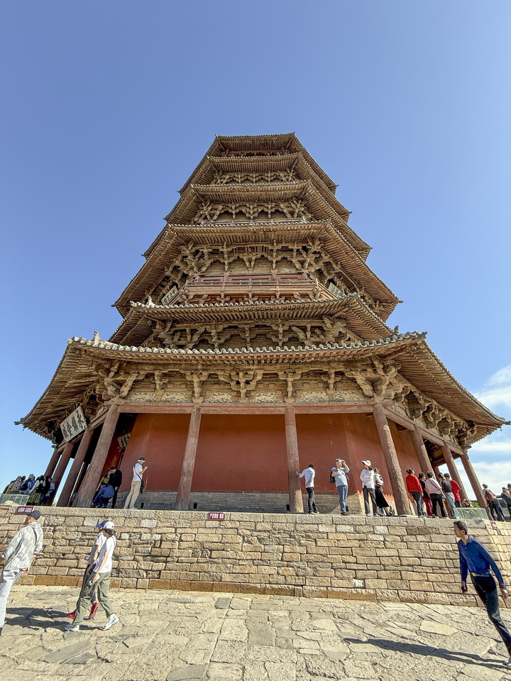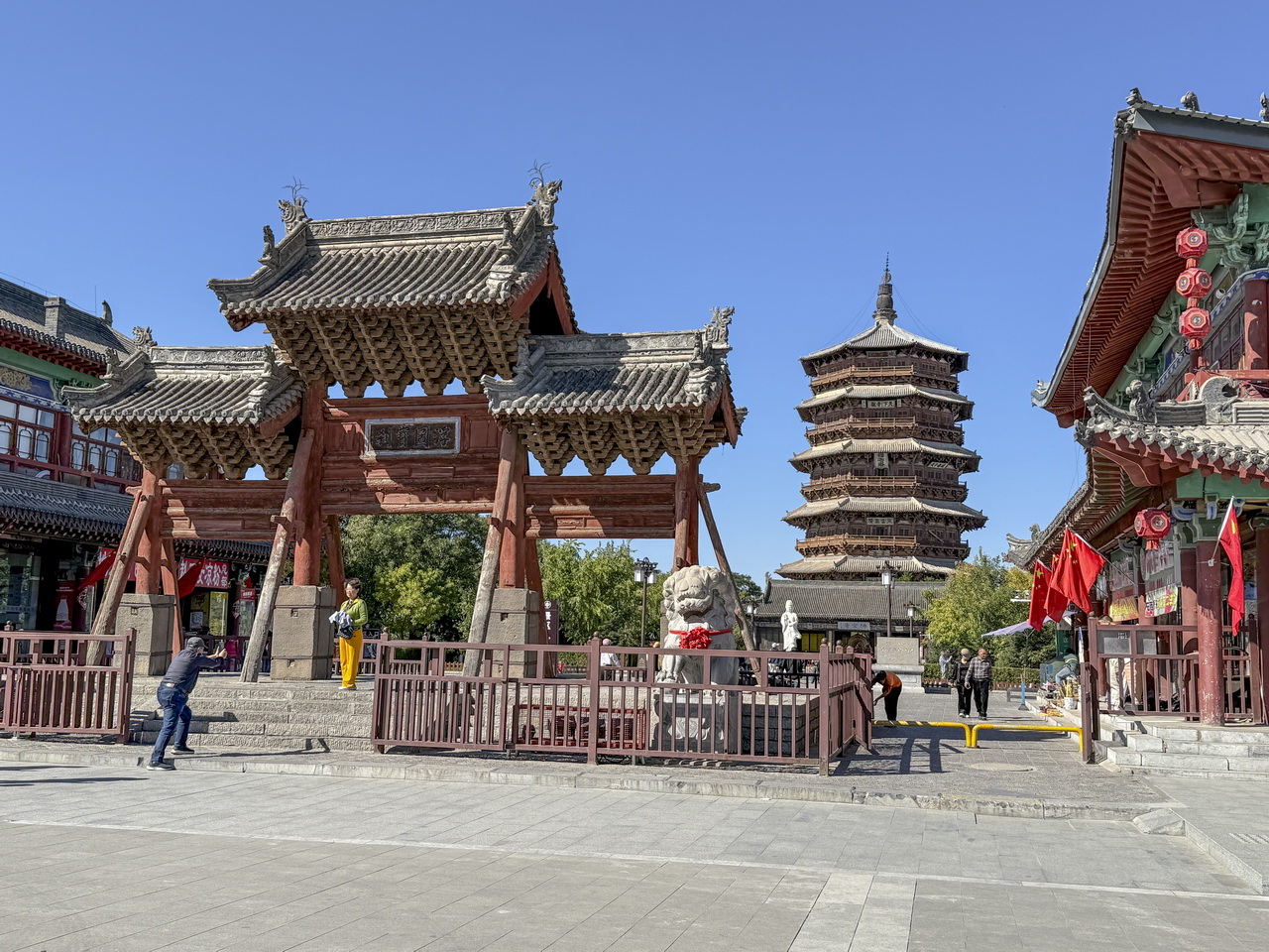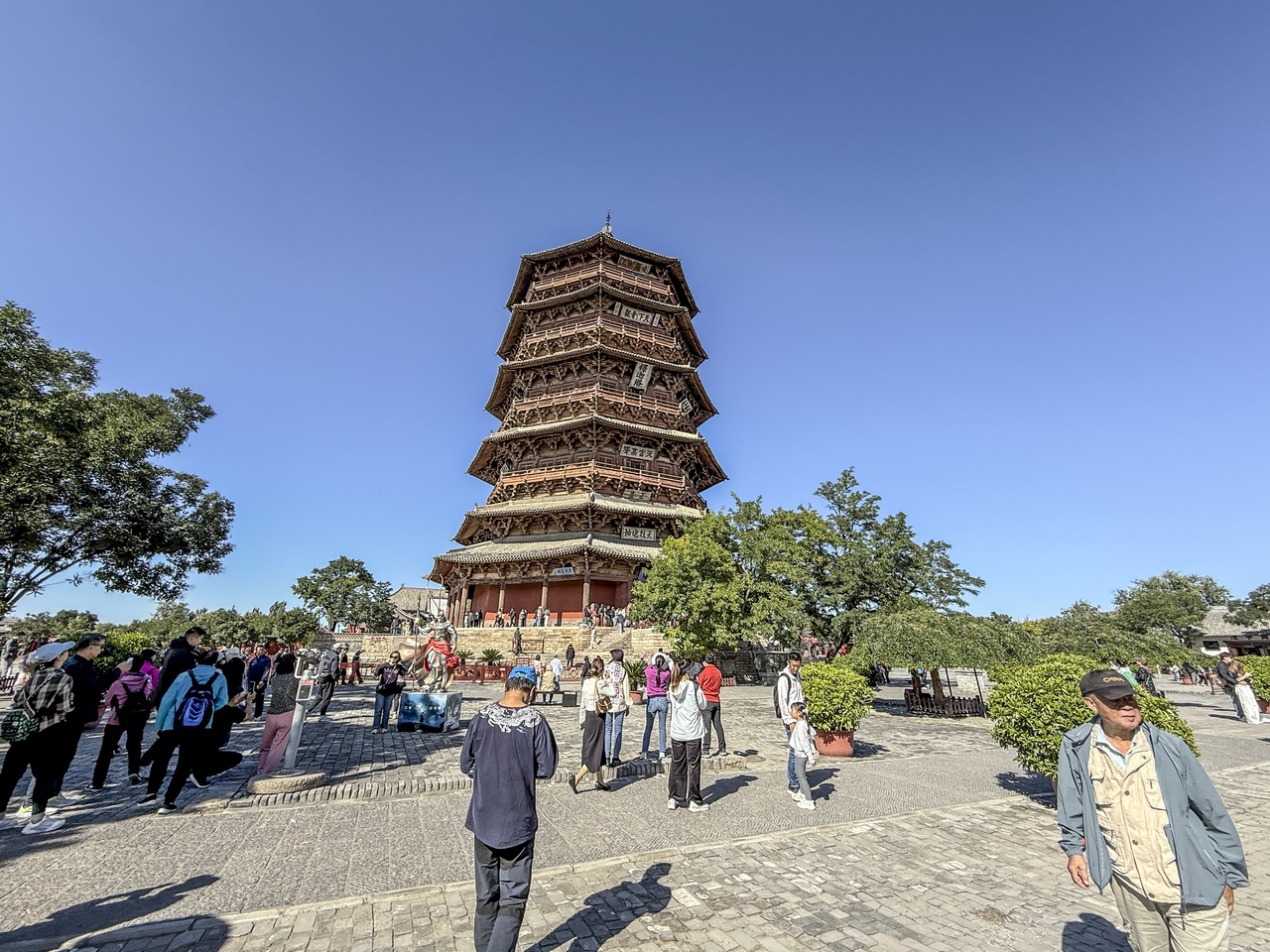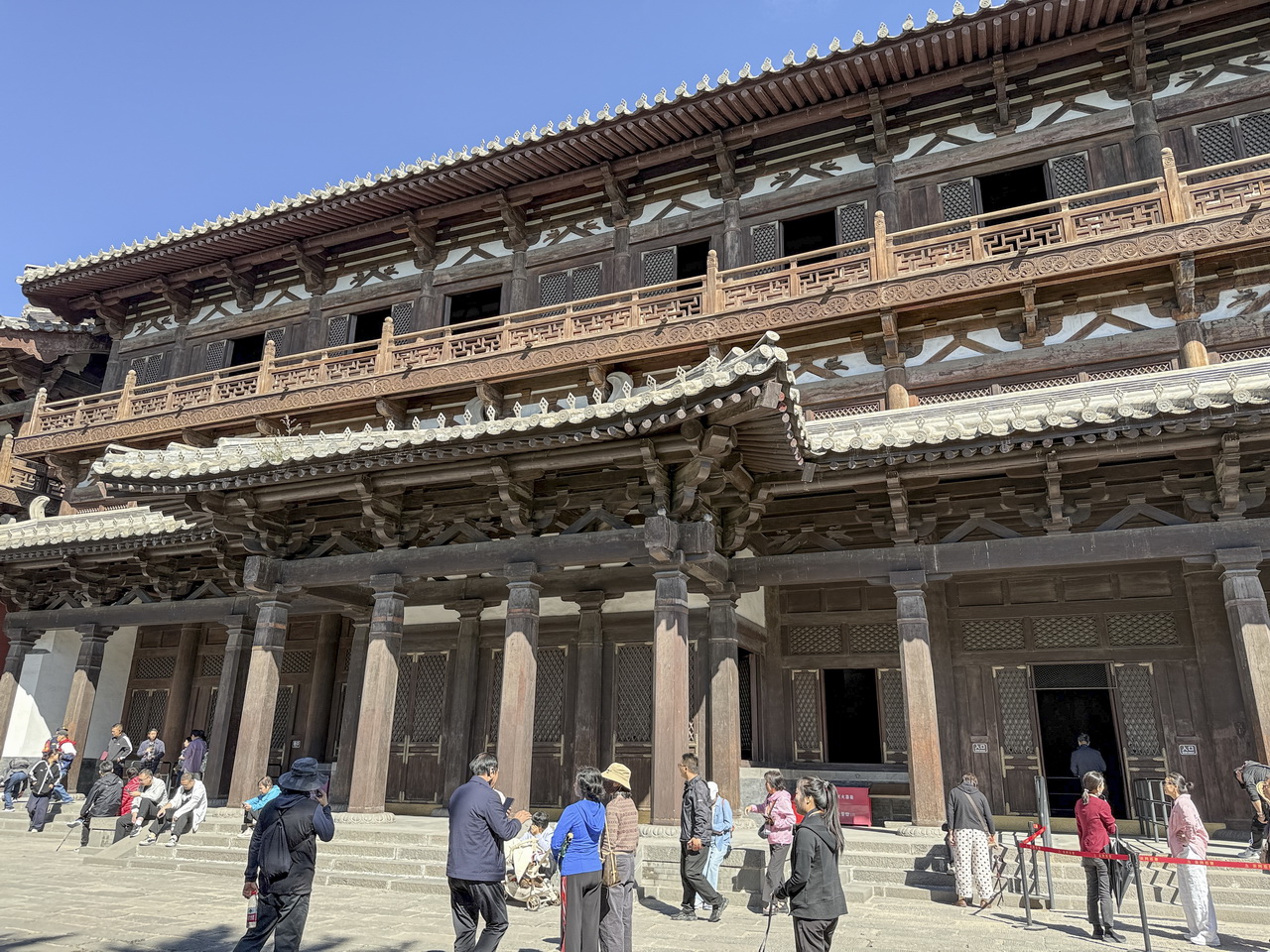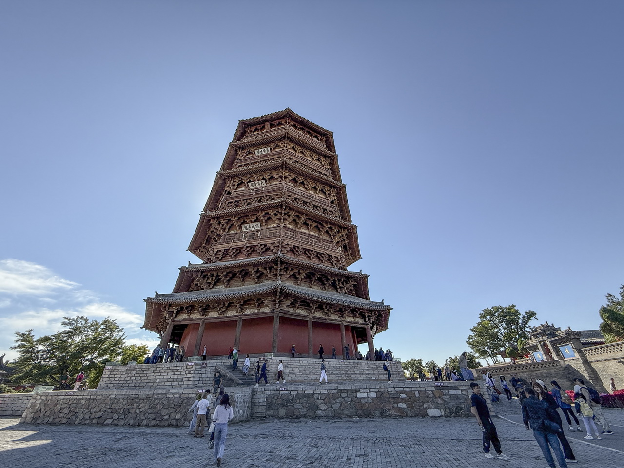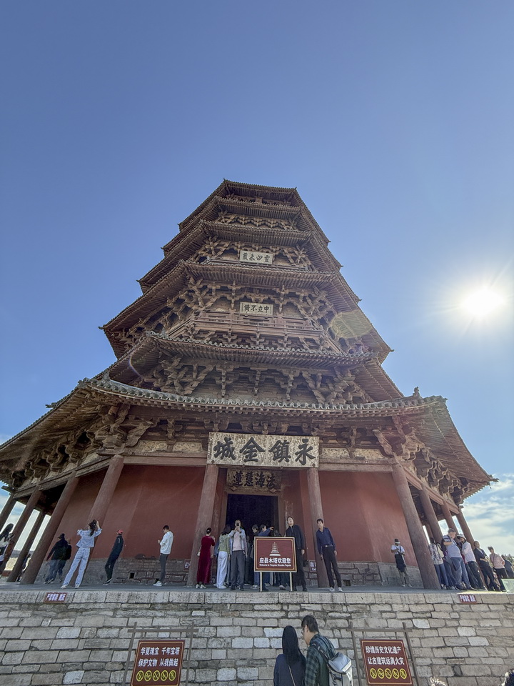 下午前往應縣木塔,位於朔州應縣,離大同市真的好遠,如果不是包車,一天走這兩個行程真的非常趕。木塔始建於遼代,大約是(1056年),塔高67.31公尺,是中國現存最古老、最高的木塔。一樓內部正中有一尊高約10米的釋迦造像,頂部建有藻井。應縣木塔內共有54塊明、清、民國時期的楹聯和牌匾。木塔匾額中最古老的是釋迦塔、康熙六十一年的萬古觀瞻、明成祖朱棣的峻極神工、明武宗朱厚照的天下奇觀等。