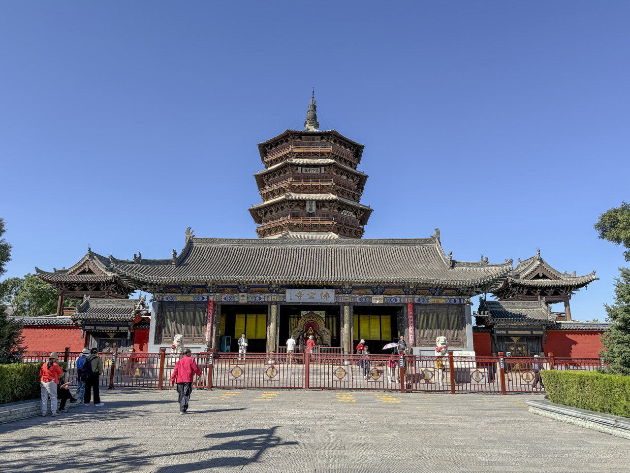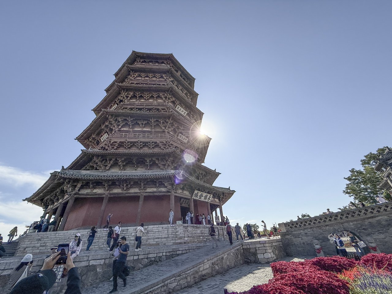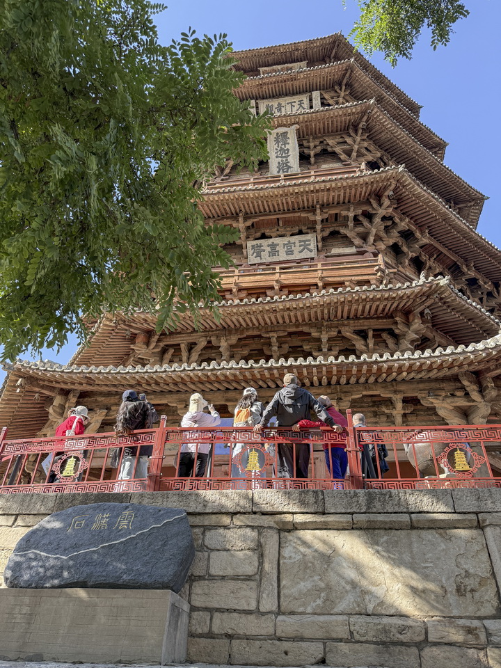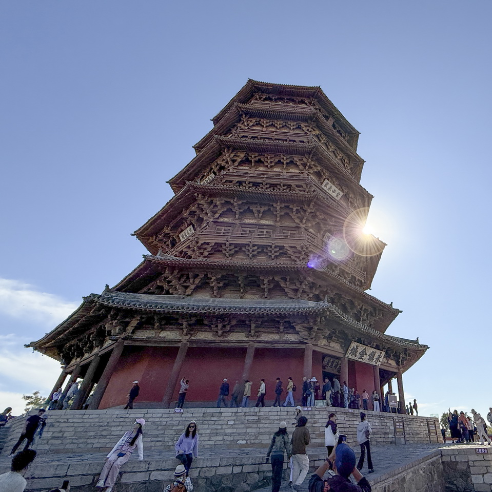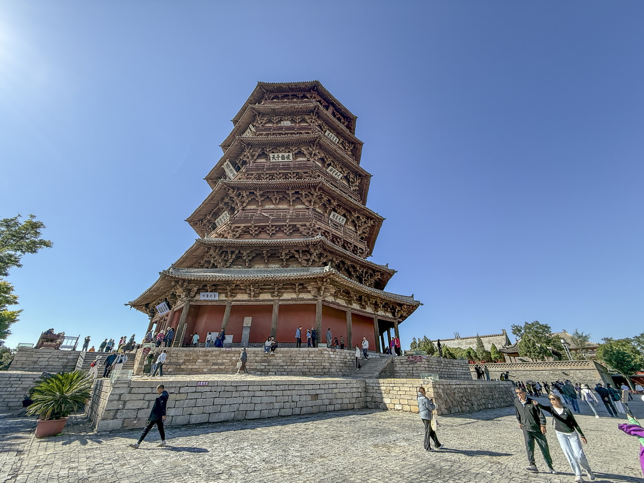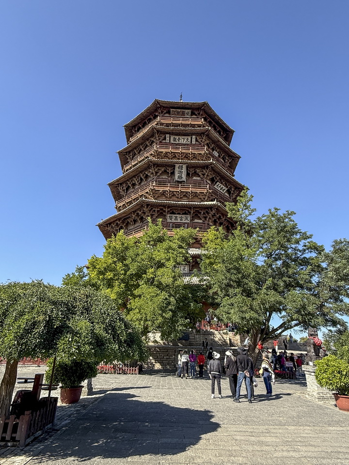 下午前往應縣木塔,位於朔州應縣,離大同市真的好遠,如果不是包車,一天走這兩個行程真的非常趕。木塔始建於遼代,大約是(1056年),塔高67.31公尺,是中國現存最古老、最高的木塔。一樓內部正中有一尊高約10米的釋迦造像,頂部建有藻井。應縣木塔內共有54塊明、清、民國時期的楹聯和牌匾。木塔匾額中最古老的是釋迦塔、康熙六十一年的萬古觀瞻、明成祖朱棣的峻極神工、明武宗朱厚照的天下奇觀等。