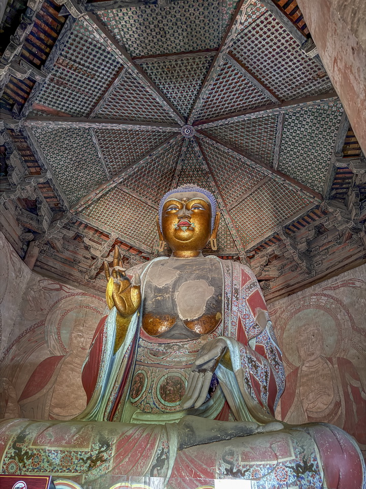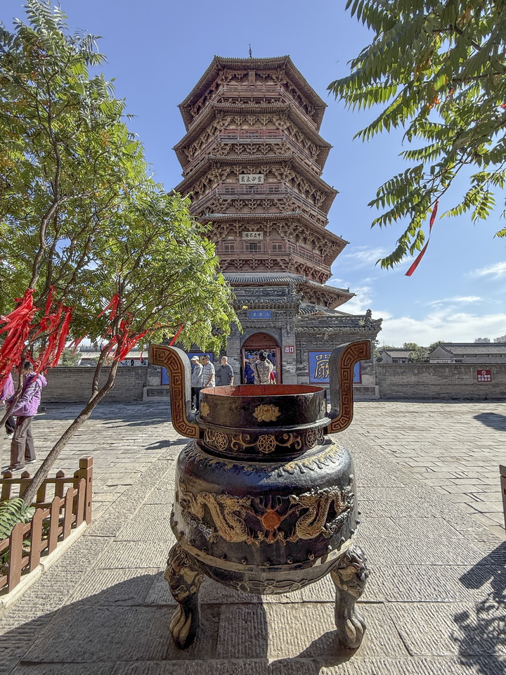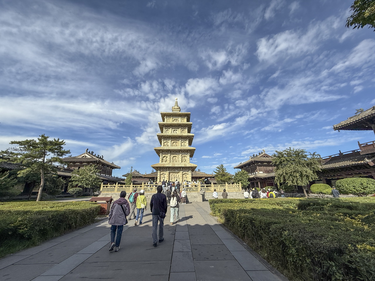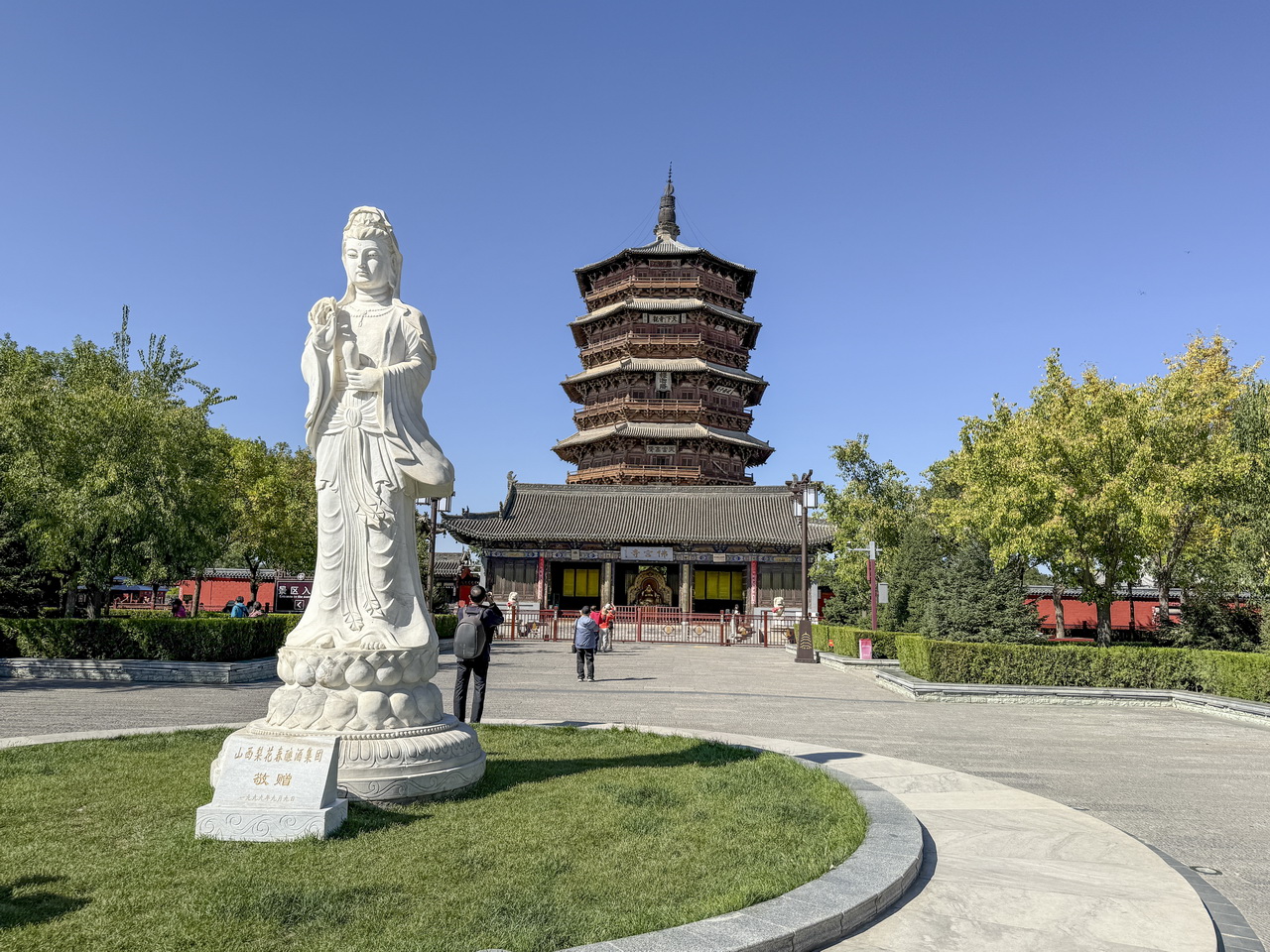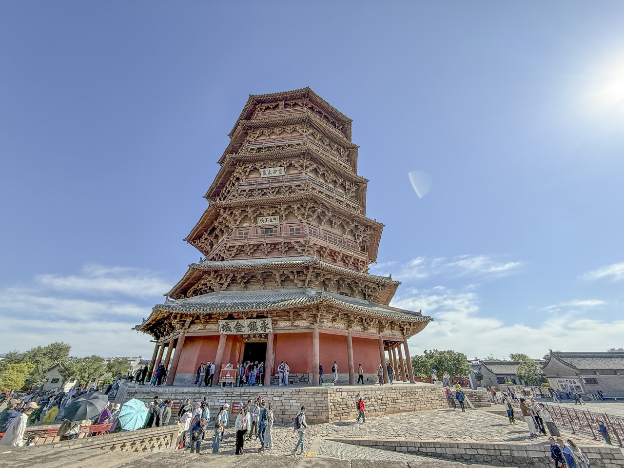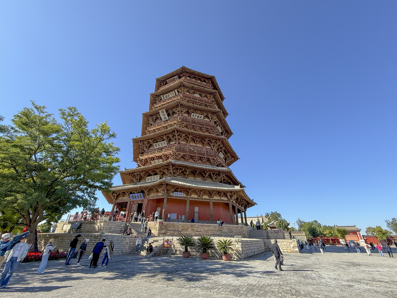 下午前往應縣木塔,位於朔州應縣,離大同市真的好遠,如果不是包車,一天走這兩個行程真的非常趕。木塔始建於遼代,大約是(1056年),塔高67.31公尺,是中國現存最古老、最高的木塔。一樓內部正中有一尊高約10米的釋迦造像,頂部建有藻井。應縣木塔內共有54塊明、清、民國時期的楹聯和牌匾。木塔匾額中最古老的是釋迦塔、康熙六十一年的萬古觀瞻、明成祖朱棣的峻極神工、明武宗朱厚照的天下奇觀等。