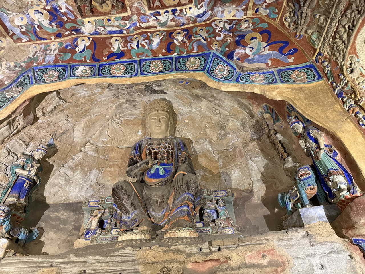 第十七窟:立像是菩薩裝的交腳彌勒,高15.4公尺。