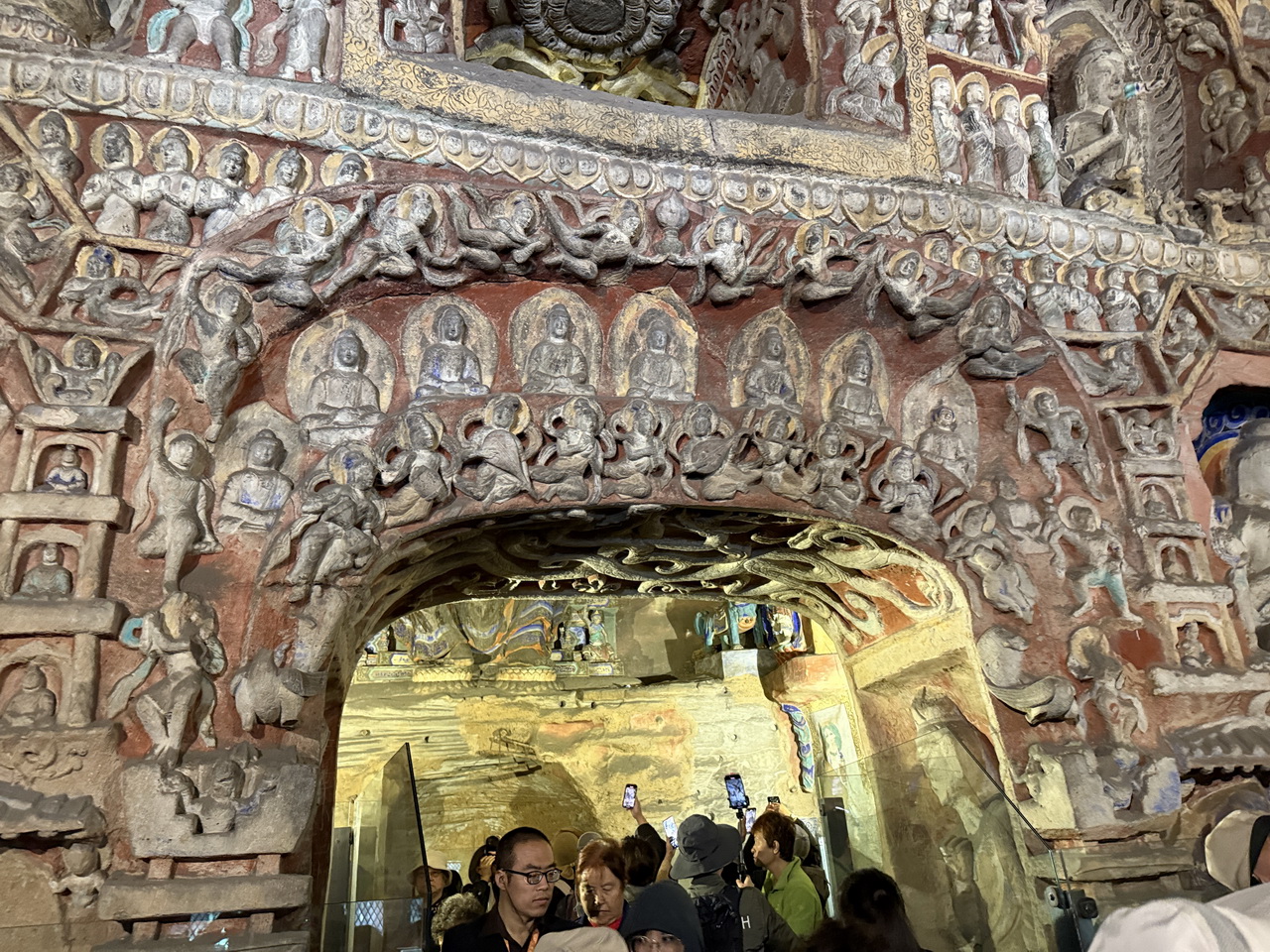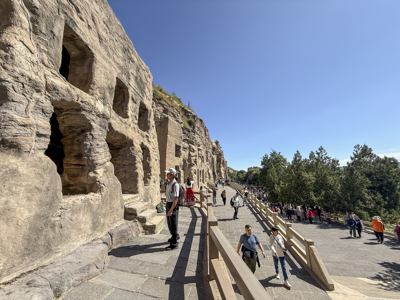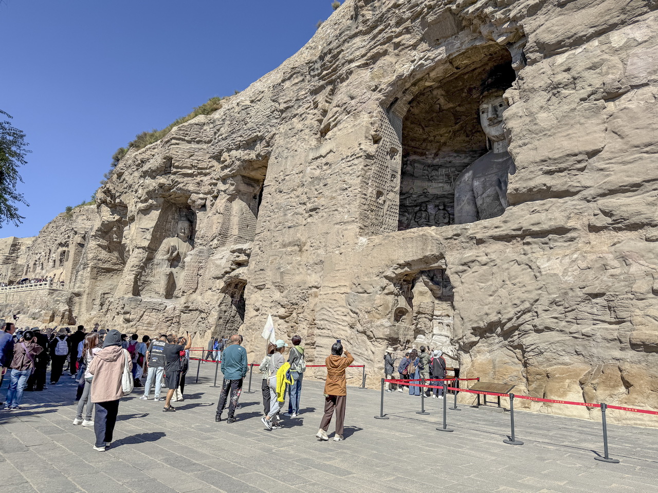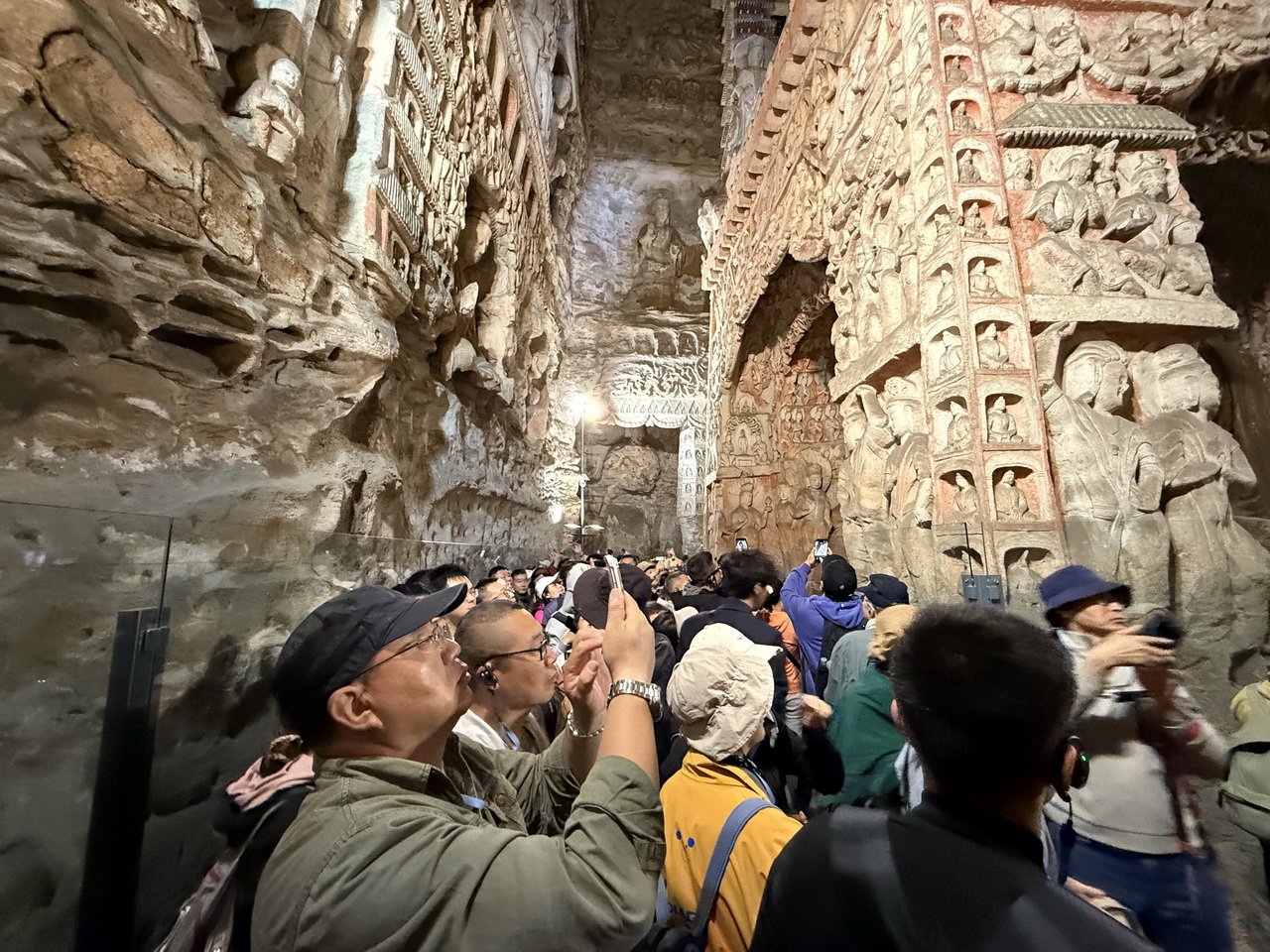 在著名的洞窟,窟內遊客眾多,例如第5、6窟等,往往在洞口就已寸步難行。後來我發現,這種擁塞的現象,團體旅遊團的導覽是一個很主要的原因。他們為了給團員解說,往往在入口處就開始解說,因此後方的遊客就會被堵在門外。然而在洞內卻仍有很大的空間,因此,我就觀察這個團體,看看什麼地方有比較大的空隙,穿過他們往裡面走,就會得到很大的空間,不必被人群擠著前進。