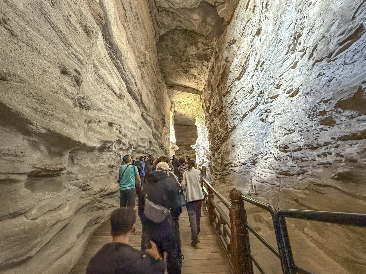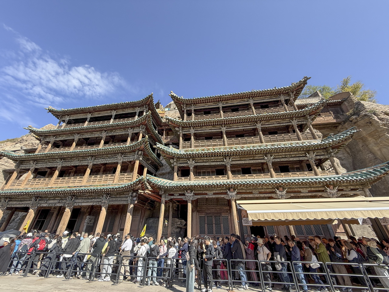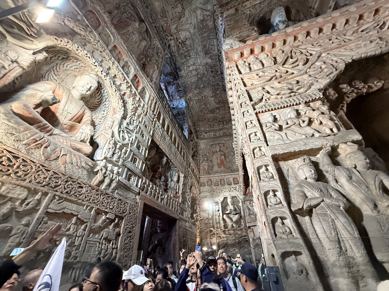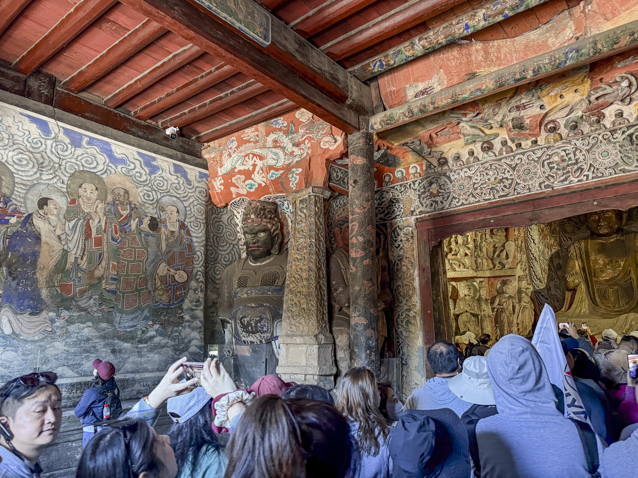 在著名的洞窟,窟內遊客眾多,例如第5、6窟等,往往在洞口就已寸步難行。後來我發現,這種擁塞的現象,團體旅遊團的導覽是一個很主要的原因。他們為了給團員解說,往往在入口處就開始解說,因此後方的遊客就會被堵在門外。然而在洞內卻仍有很大的空間,因此,我就觀察這個團體,看看什麼地方有比較大的空隙,穿過他們往裡面走,就會得到很大的空間,不必被人群擠著前進。