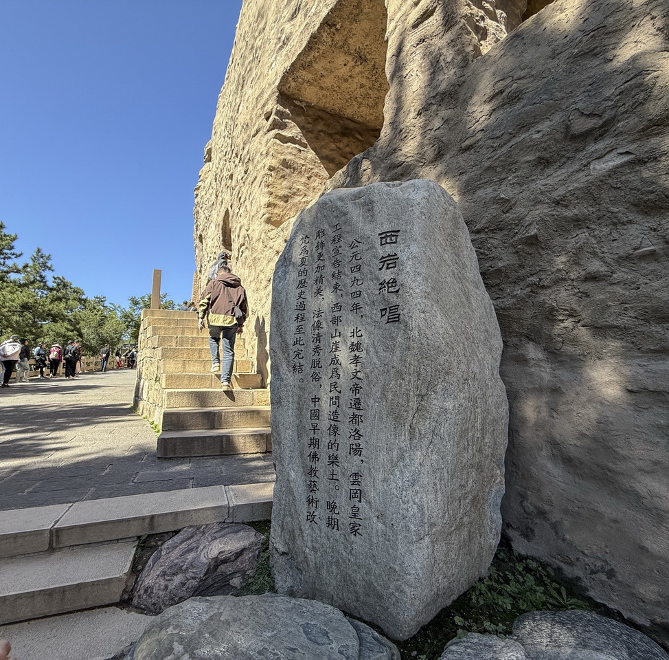 雲崗石窟和民宿只隔著一條河,但是步行需要走2公里。民宿主人熱心載我們進入景區,讓我們在售票口下車。