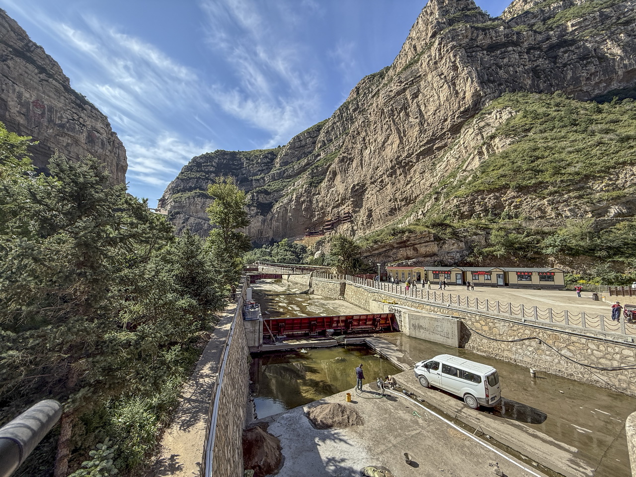 計程車司機說遊完懸空寺,要搭車回遊客中心,再搭車前往恒山。實做之後,才發現錯了,還好這段重複的路並不太遠。在懸空寺就有往恒山岳門灣的車,搭這一班就可以抵達恒山的纜車站。如果不想搭纜車上山,想要走路登恒山的話,就要搭車到恒宗。
