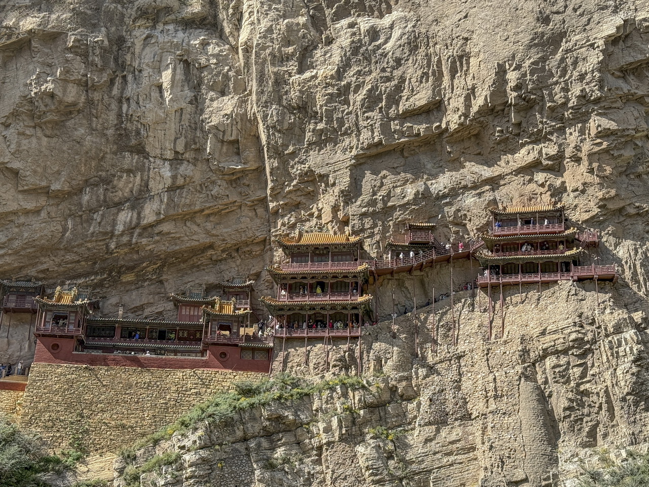 在觀景台眺望懸空寺,下方排隊等候進入寺內的隊伍,排了數百公尺長,我估計排在隊伍最後的人要進入寺內,可能還得等上二個小時。此時的我,慶幸還好沒有買到登臨寺內的票,不然就會面臨行程變更取捨的難題。