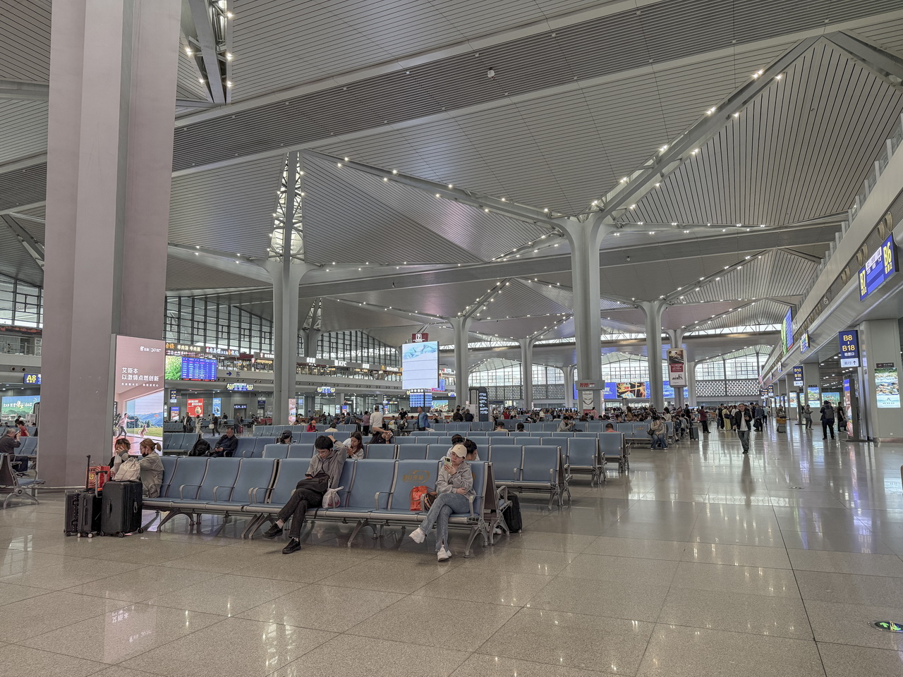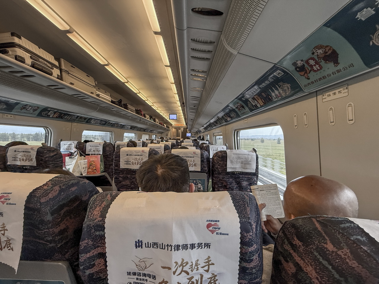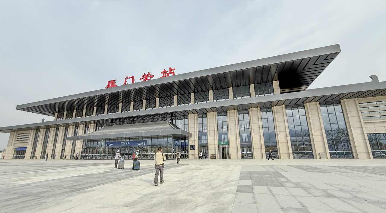遊客中心門口外路邊,有長途巴士開往新建的雁門關高鐵站。太原南站是山西境內許多高鐵路線的起終點站,我們在這裡轉車前往臨汾西站過夜。