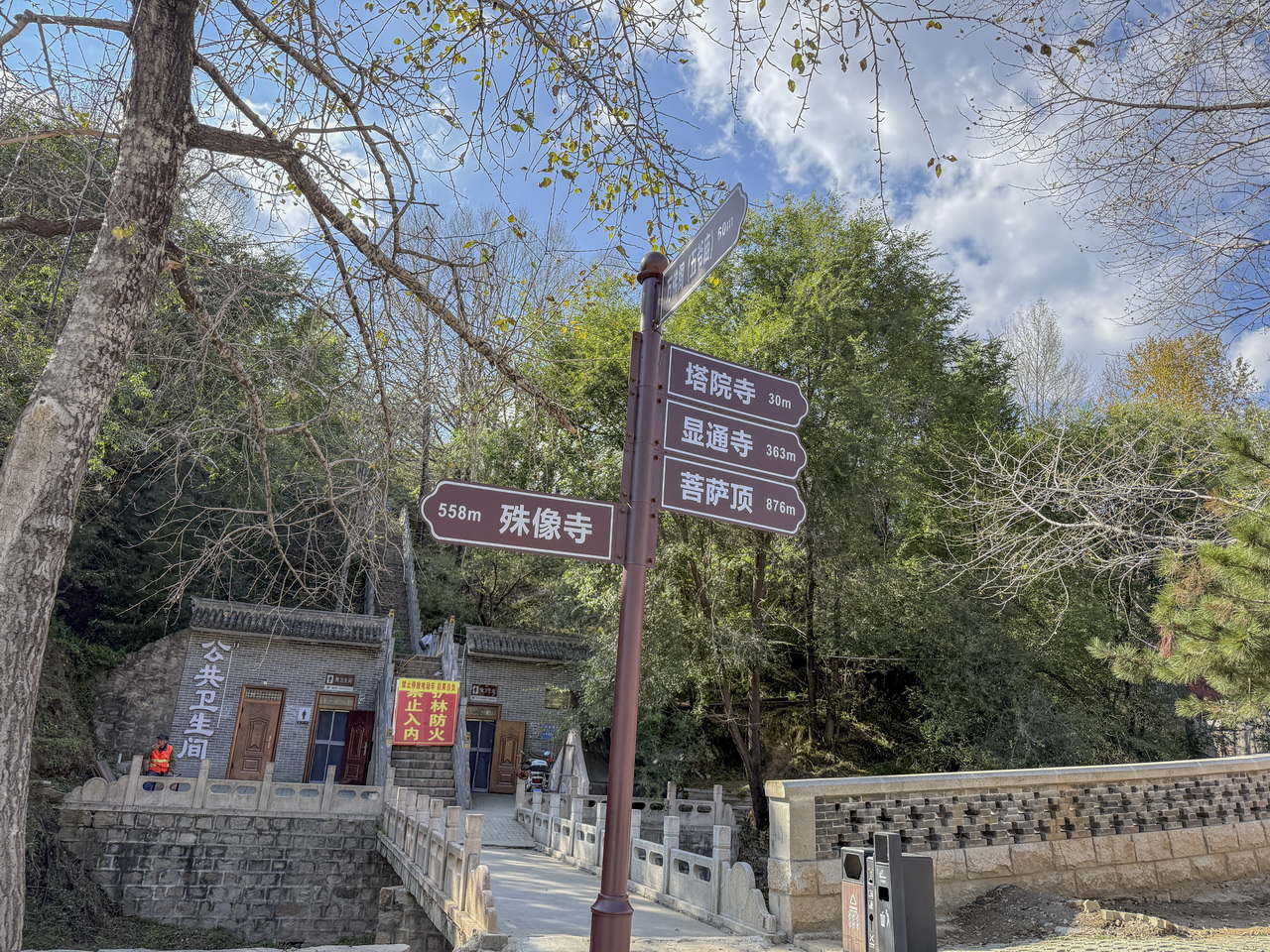 在菩薩頂的南側,緊鄰著有幾座寺廟,顯通寺、塔院寺、羅睺寺、廣仁寺、五爺廟、大圓通寺等。再往南一點則是殊像寺,這些寺廟都可以步行方式前往。附近的公車站多,非常方便前往其他景點。