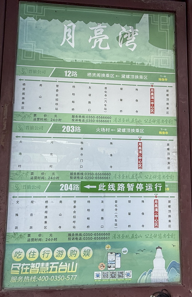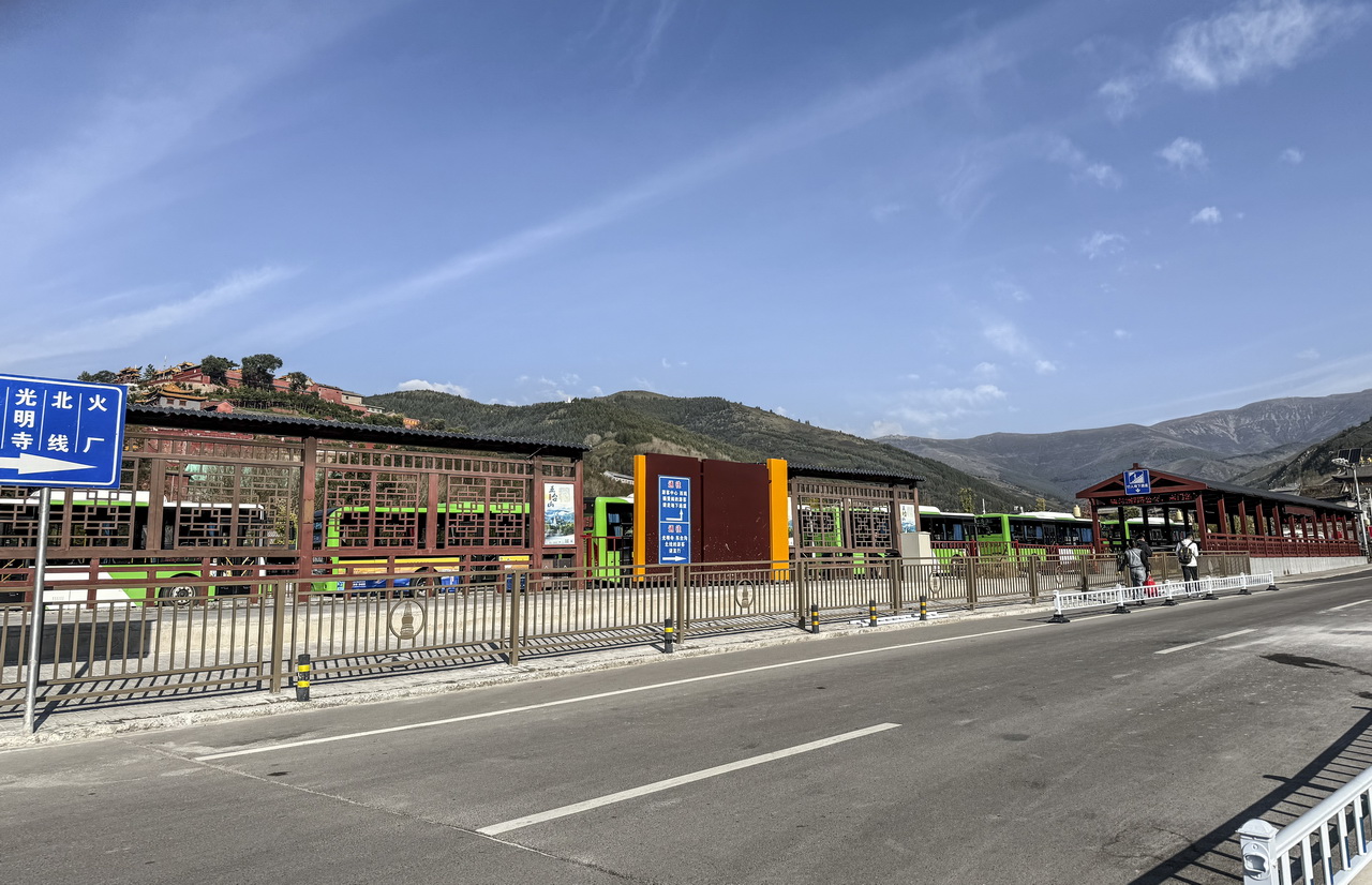 昨晚試著從網路預購巴士車票,結果失敗。一早趕在巴士站開始售票時到達窗口,順利買到了車票。路途遙遠,到達五台山南門入口遊客中心,司機讓所有的人下車,進入遊客中心購票,經檢票後再上原車直達五台山汽車站。