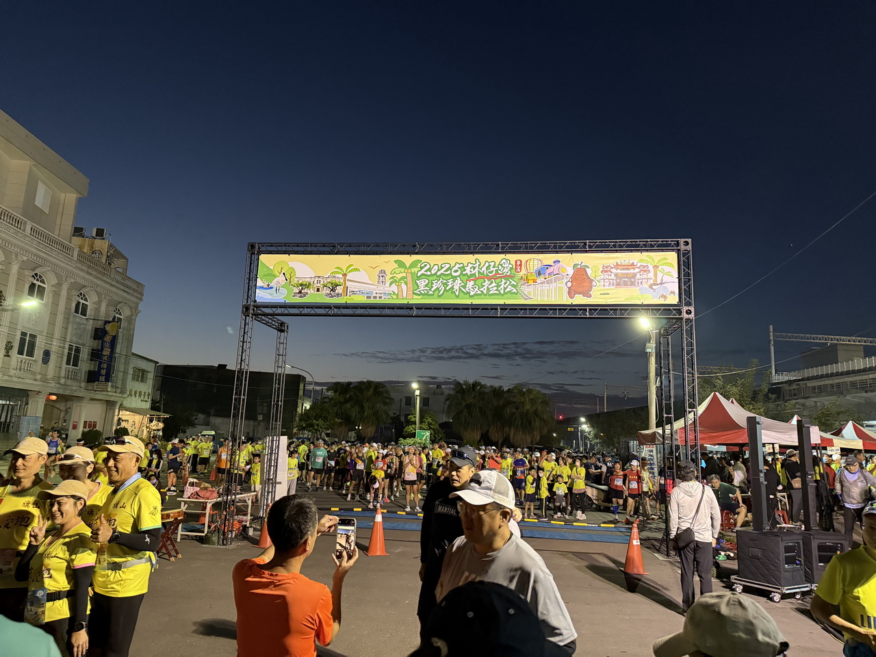 來到援中地區,賽道旁並無居民,道路筆直又長,向遠處望去,不知道轉入蚵仔寮的路口在那裡,這一段跑得有點辛苦。此時提醒自己只要專注於呼吸的節奏,其它的事就會被忽略,步伐自然會輕鬆許多。好不容易終於來到了蚵仔寮的市區,哇!好熱鬧,好像全里的市民都來到了街上,賣力的為跑者加油,還提供了不少的補給品。太感動了。